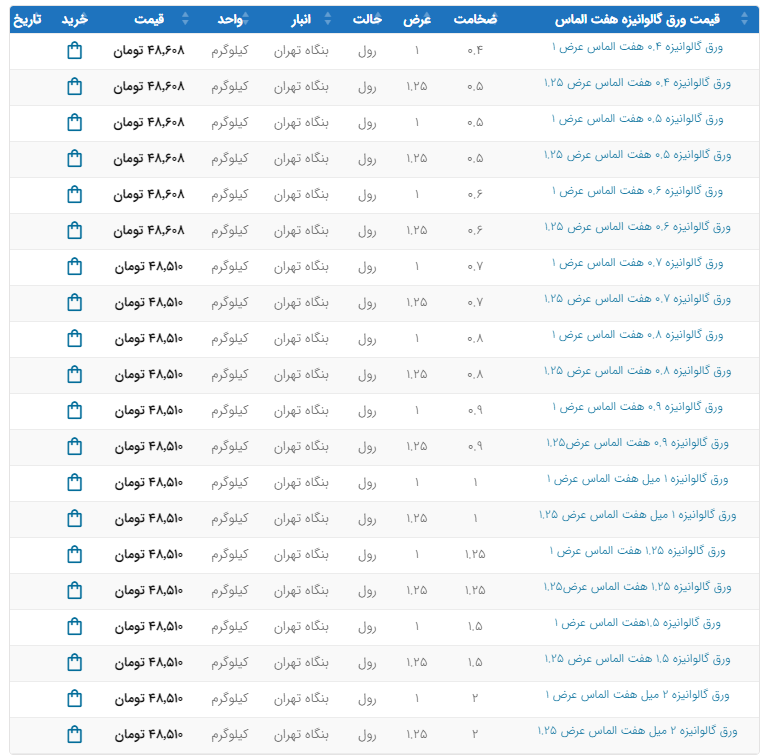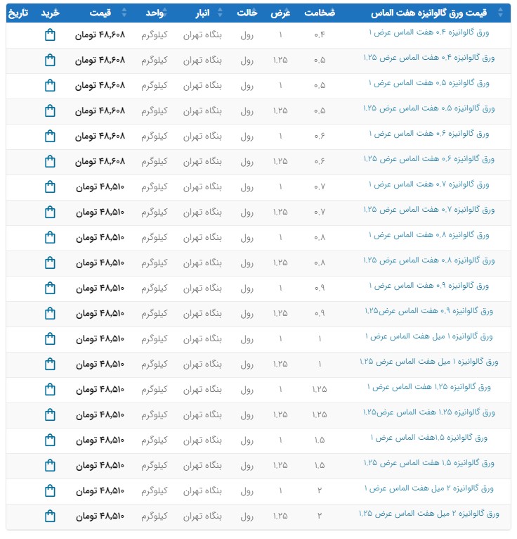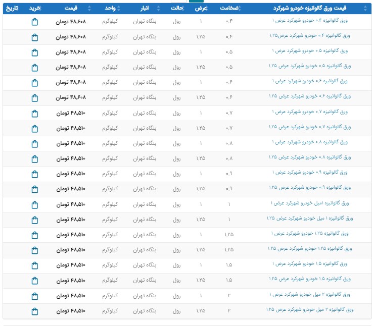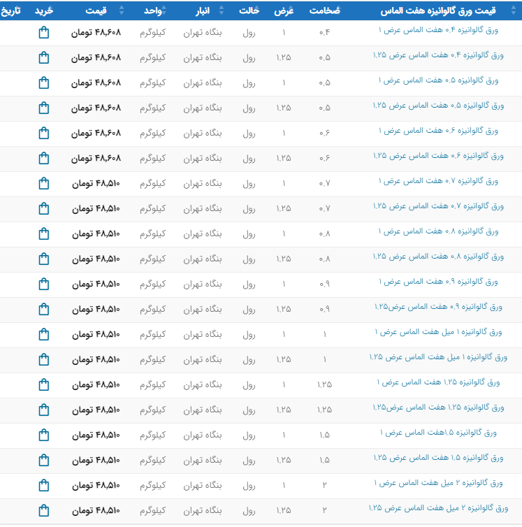 اعلام موجودی تولیدات و مصنوعات فلزی