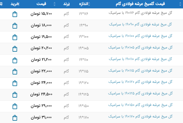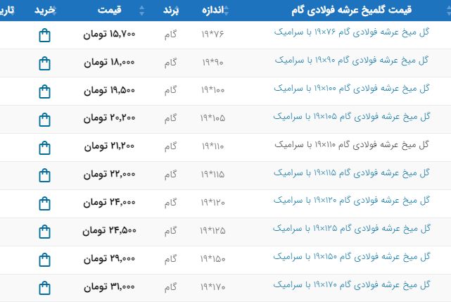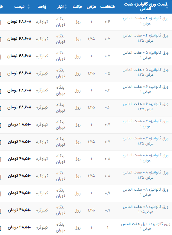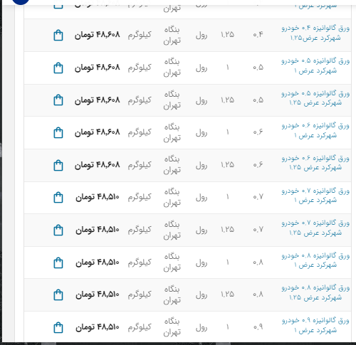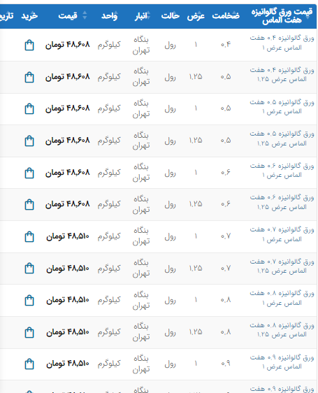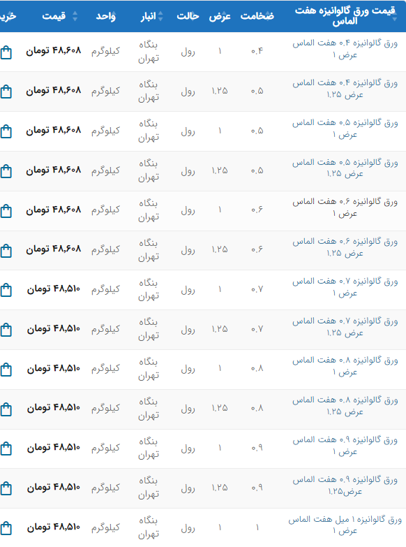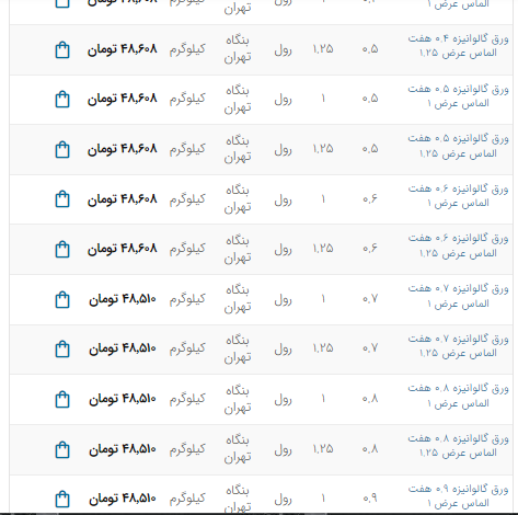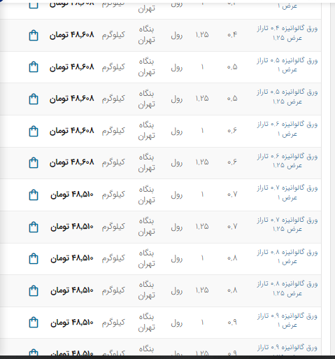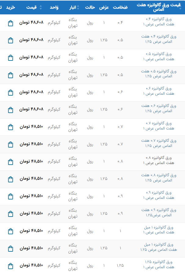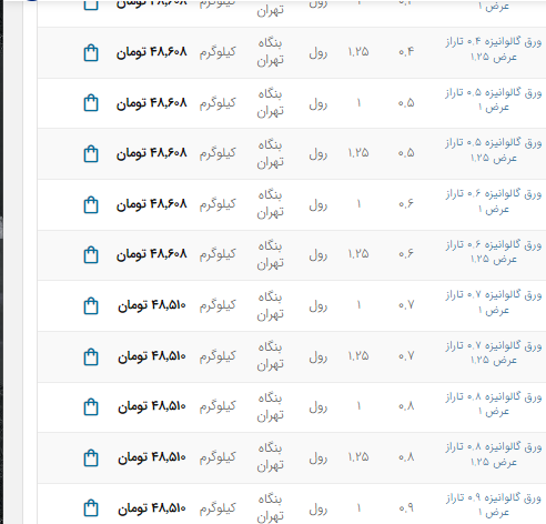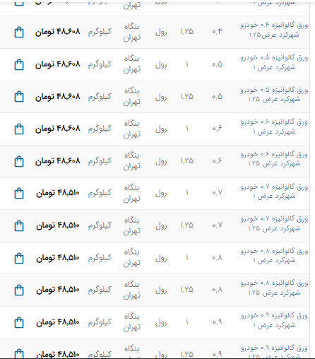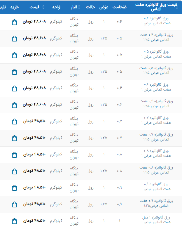 اعلام موجودی تولیدات و مصنوعات فلزی