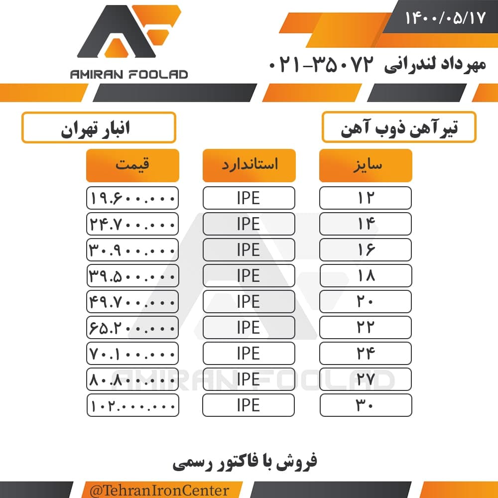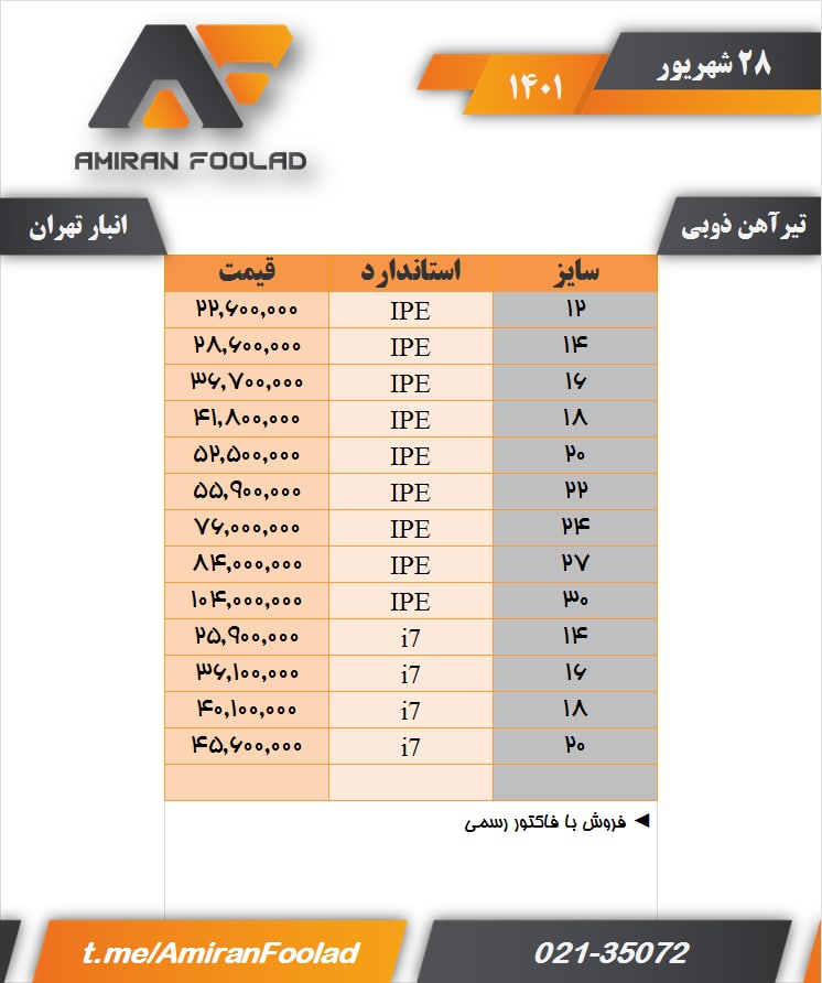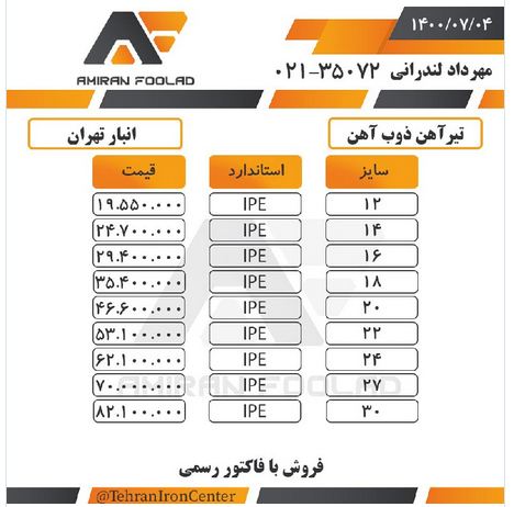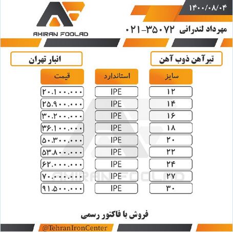 تیرآهن ذوبی انبار تهران جهت اطلاع از قیمت بدون فاکتور تماس بگیرید. @TehranIronCenter