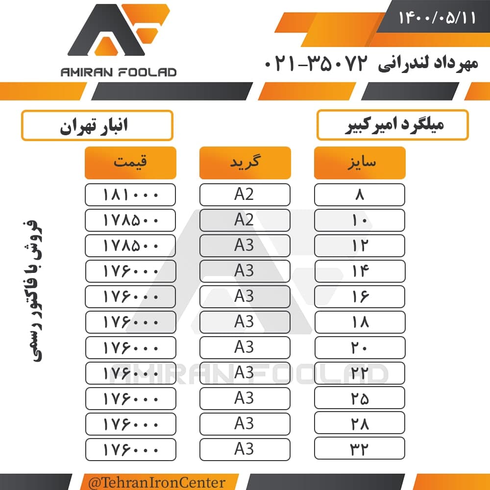امیرآباد کارخانه جهت اطلاع از قیمت بدون فاکتور تماس بگیرید. ♦️ فروش مستقیم میلگرد کارخانه های : ♦️ذوب آهن ♦️نیشابور ♦️ابر کوه ♦️بافق یزد ♦️میانه سی ...