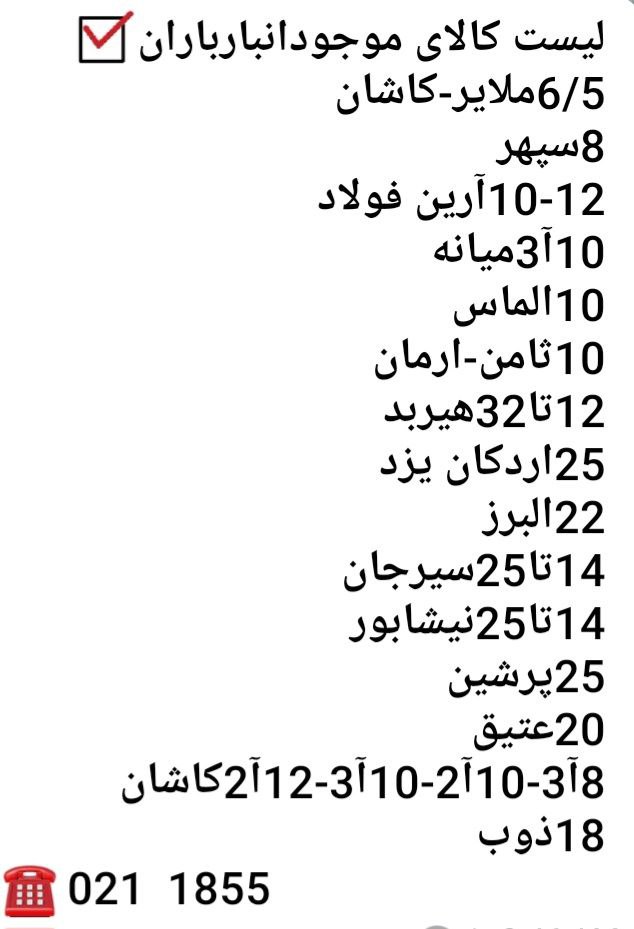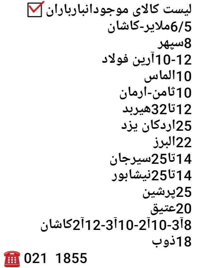#فولاد_باران ↖️کلیه اجناس فوق موجوددرانبار باران میباشد↖️ #شرکت_آرتا_تجارت_افق_باران فروش تخصصی #میلگرد در انبار تهران و کارخانه ☎️ 021 1855 ☎️ 90002000 1402 ...
