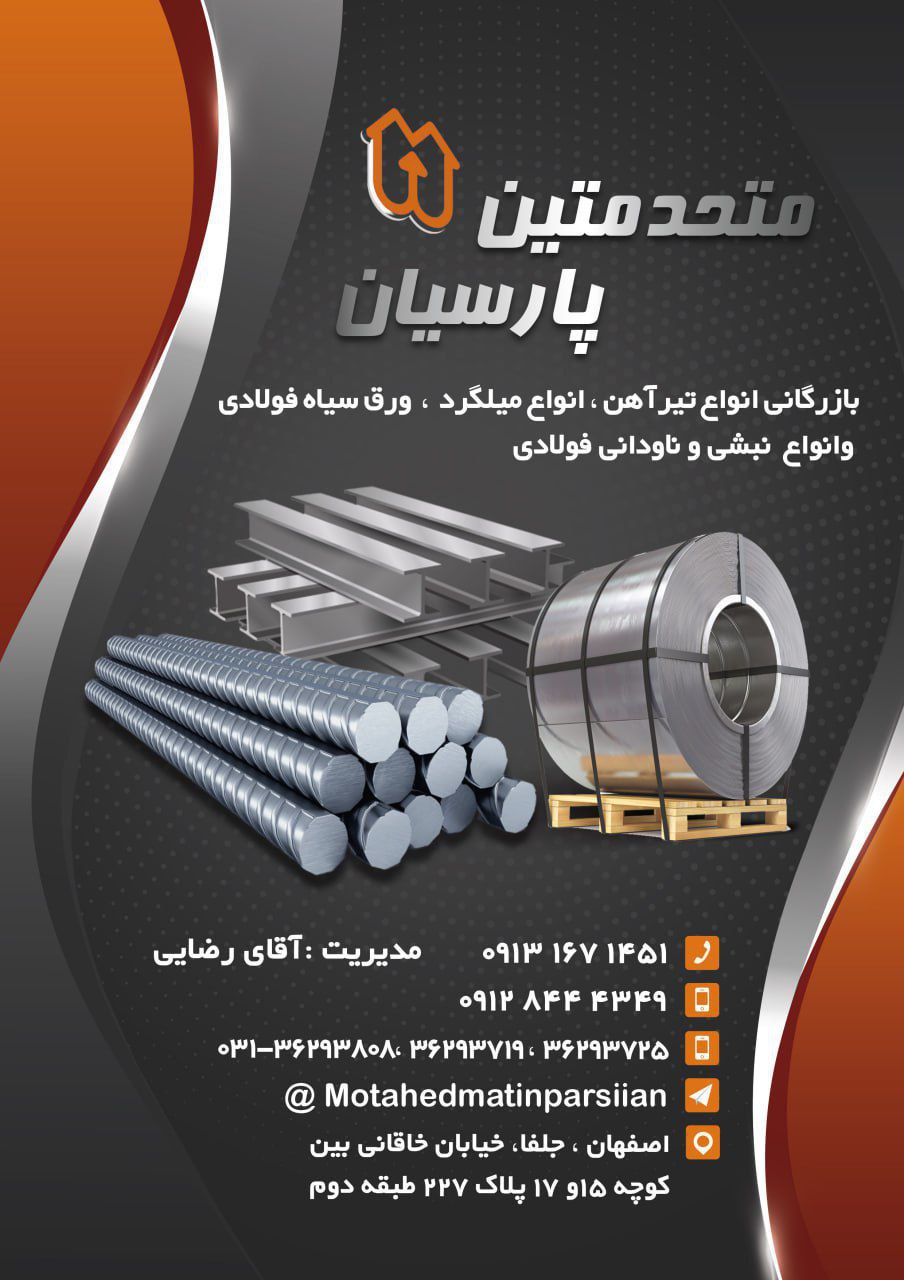 ⏳#متحد_متین_پارسیان⏳ 🔴تامین کننده انواع مقاطع فولادی 🔹تیرآهن 🔹تیرآهن نیمه سبک 🔹میلگرد 🔹نبشی 🔹ناودانی راه های ارتباط با ما : شماره تلفن ها ☎️ 03136293 ...