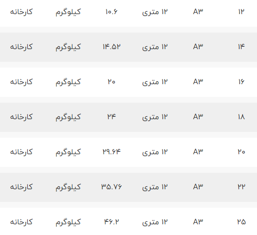 تيرآهن ١٤ ⬅️ ۴۱/۵۰۰/۰۰۰ تيرآهن ١٦ ⬅️ ۵۰/۵۰۰/۰۰۰ تيرآهن ١٨ ⬅️ ۶۲/۵۰۰/۰۰۰ تیرآهن ۲۰ ⬅️ ۷۰/۵۰۰/۰۰۰
