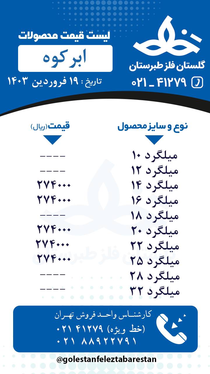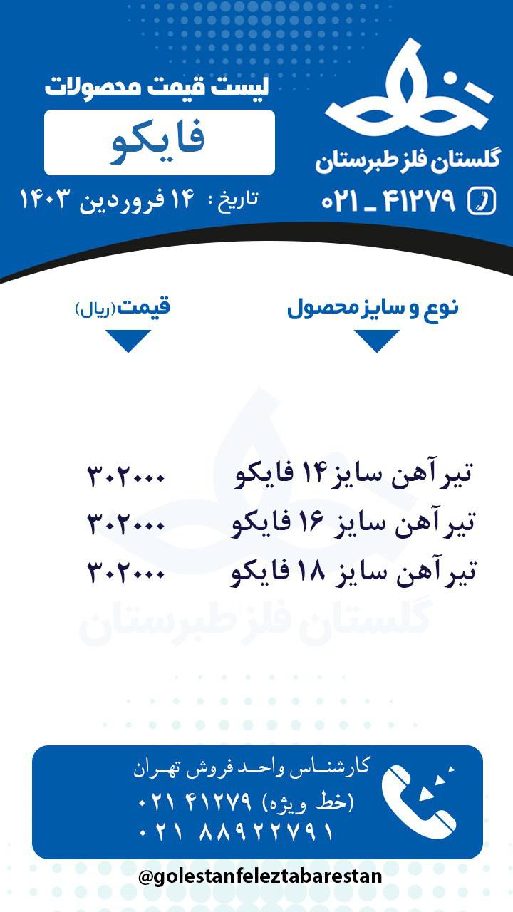 لیست قیمت کارخانه فولاد البرز ایرانیان فایکو 📌 برای مشاوره رایگان قبل از خرید آهن آلات، تماس بگیرید :👇🏻 📞 021_ 41279 گلستان فلز طبرستان:#انصاف_تعهد_سرعت ...