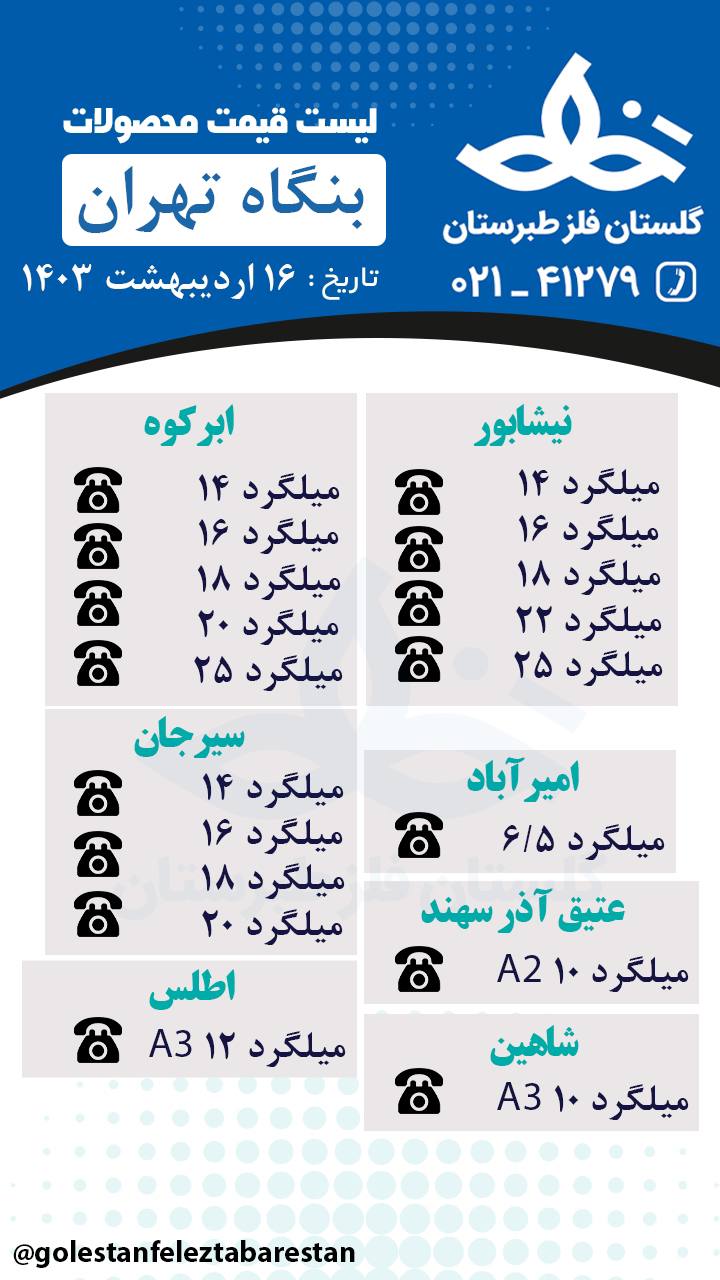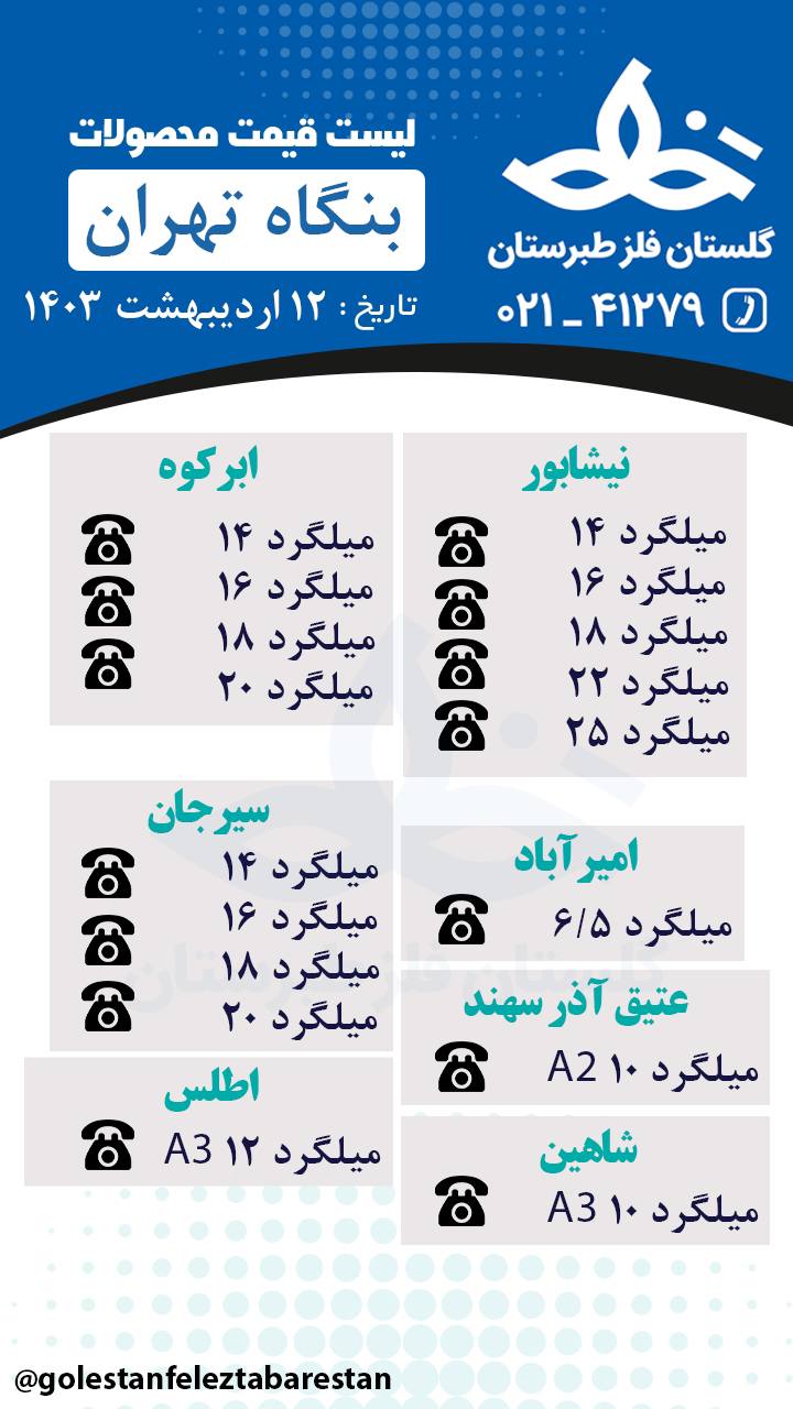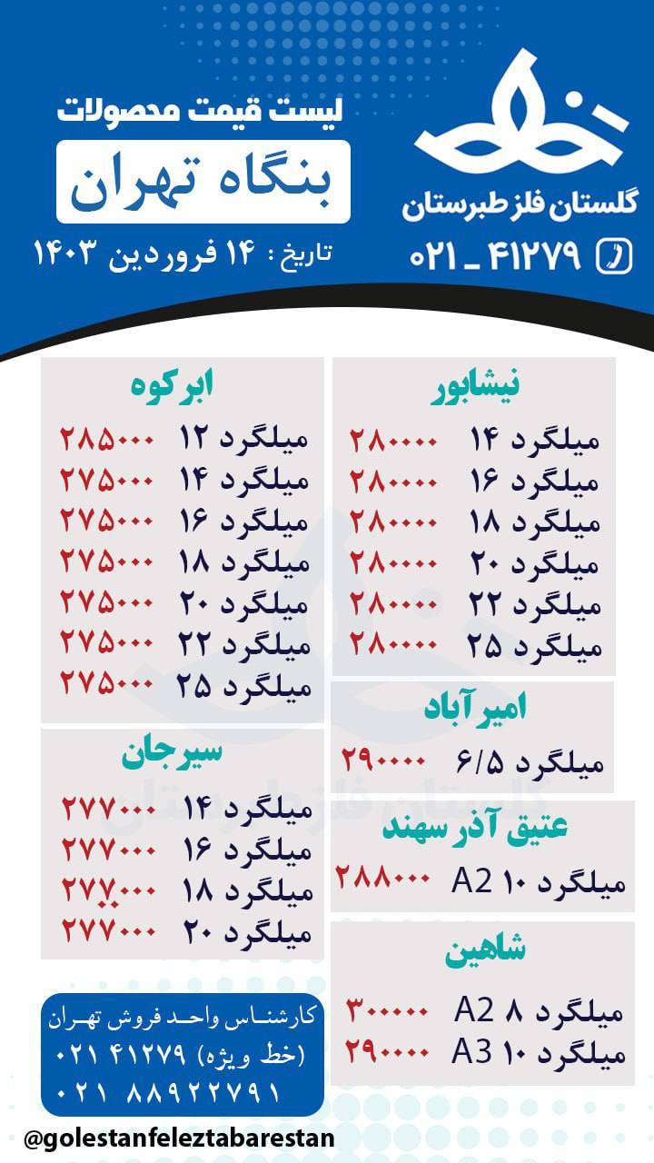 لیست قیمت بنگاه تهران 📌 برای مشاوره رایگان قبل از خرید آهن آلات، تماس بگیرید :👇🏻 📞 021_ 41279 گلستان فلز طبرستان:#انصاف_تعهد_سرعت کانال تلگرام شرکت: @gole ...