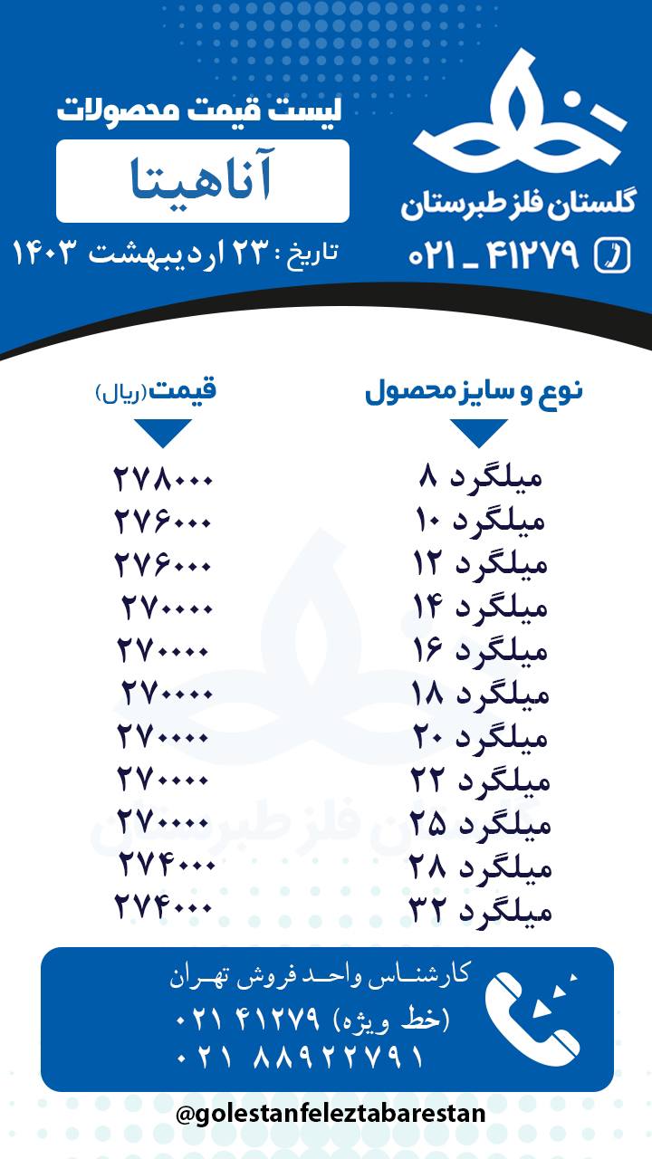 لیست قیمت کارخانه فولاد آناهیتا 📌 برای مشاوره رایگان قبل از خرید آهن آلات، تماس بگیرید :👇🏻 📞 021_ 41279 گلستان فلز طبرستان:#انصاف_تعهد_سرعت