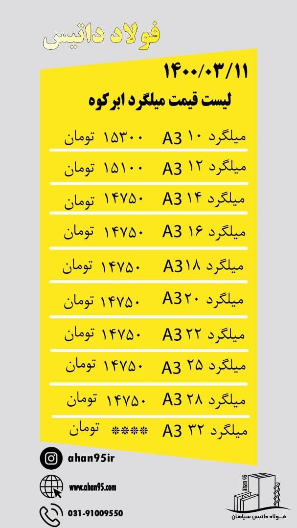 📅 سهشنبه 1400/03/11 #میلگرد_ابرکوه ❗️بارگیری از کارخانه ❗️ ☎️ 03191009550 ☎️ 09136355004 داخلی 202 و 201 برای مشاهده سایر محصولات کلیک کنید ↪️ https ...