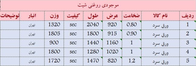 اعلام موجودی ورق رنگی
