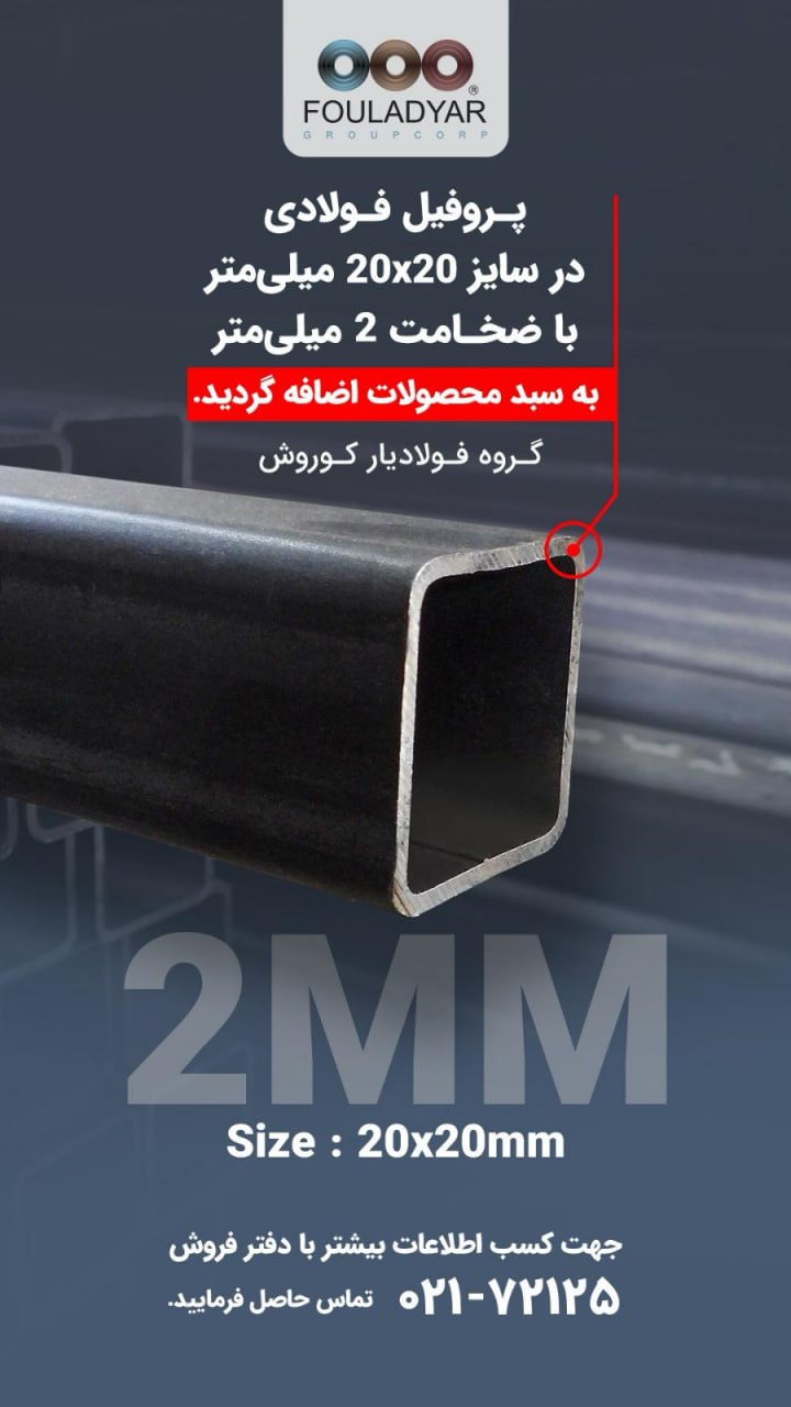 #فولادیار_کوروش 🔷 گروه فولادیار کوروش تامین کننده ورقهای گالوانیزه، رنگی و روغنی تولیدکننده انواع مصنوعات فلزی از ورق های رنگی، گالوانیزه و سرد ❇️ https://t.me/Fouladyar 🔵تولیدکننده انواع مقاطع پروفیل (قوطی) صنعتی و ساختمانی از ورقهای سیاه، روغنی و گالوانیزه ❇️ https://t.me/FouladyarProfile 🟣برشهای صنعتی: برش طولی ورق (برش صاف Sheet) برش عرضی ورق (اسلیتر Slitter) 🟢تولیدکننده عرشه فولادی: عرشه فولادی با گام 75mm عرشه فولادی با گام 65mm 🔵 تولید انواع فرمینگ: -ذوزنقه -لمبه (دامپا) -طرح سفال -طرح سفال ایتالیایی (مدل جنوا با ۲ خط طولی) -طرح سفال فرانسوی (مدل جنوا با ۳ خط طولی) -طرح سفال سوئدی (طرح پالرمو) -شادولاین -کرکره مشاهده پروفایل فولادیار کوروش 👇 https://foolad24.com/profile/5295 📞🖥ارتباط با فولادیار ☎️ 02172125 جهت تماس کلیک کنید 👈🏻 +982172125000 ✅ https://fouladyargroup.com/?utm_source=Foolad24&utm_medium=Social&utm_campaign=1403 🆔 https://www.instagram.com/fouladyar.group?igsh=MThreHg3ZTFzM3l4Mw==