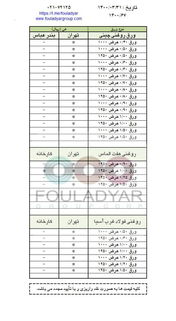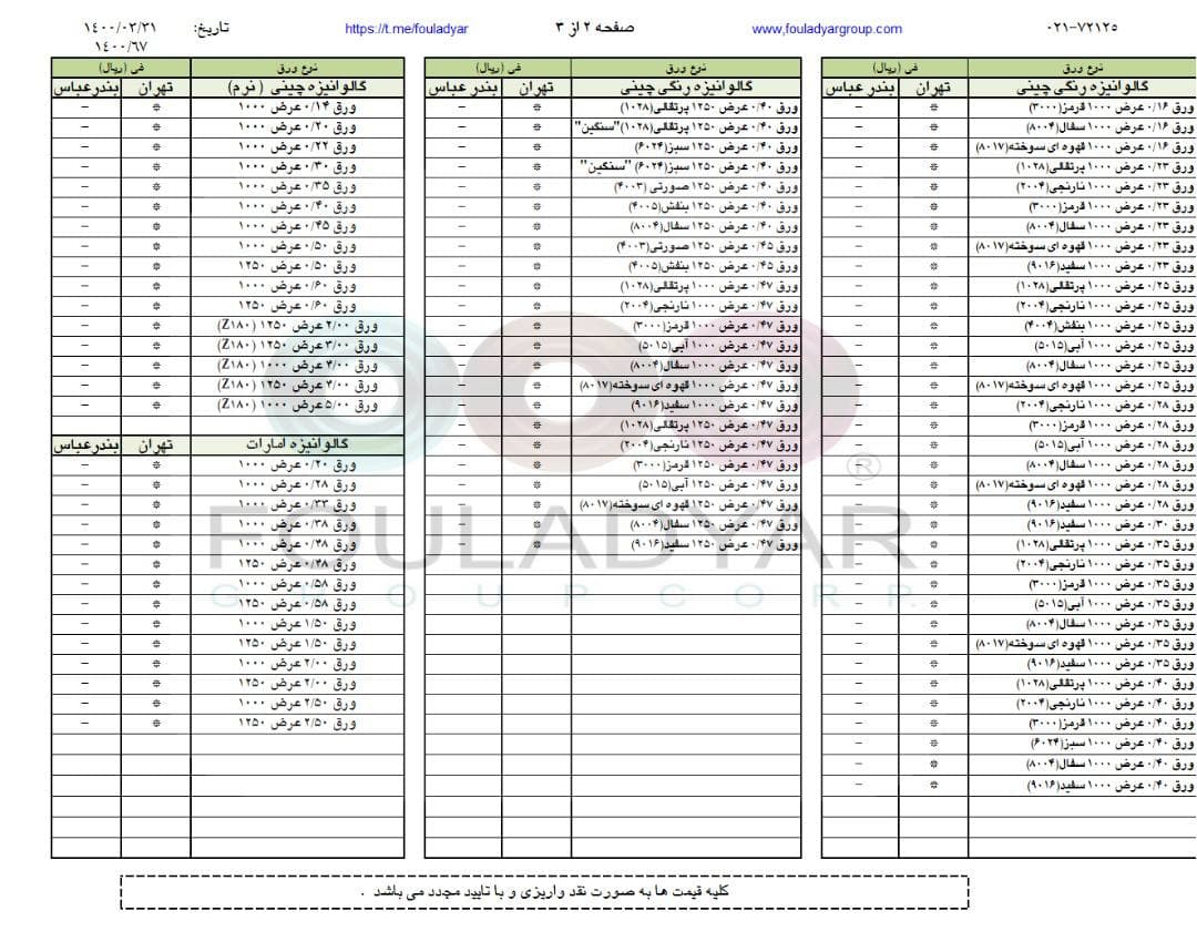 #گروه_شركتهاي_فولاديار 🔸بزرگترین عرضه کننده ورقهای سرد،گالوانیزه و رنگی ☎️021-72125 🌐http://www.fouladyargroup.com/ 🆔https://t.me/fouladyar https://foolad24 ...