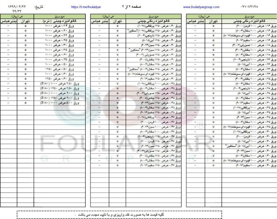 #گروه_شركتهاي_فولاديار بزرگترین عرضه کننده ورقهای سرد گالوانیزه و رنگی ۰۲۱۷۲۱۲۵ http://www.fouladyargroup.com/ https://t.me/fouladyar
