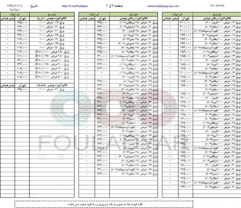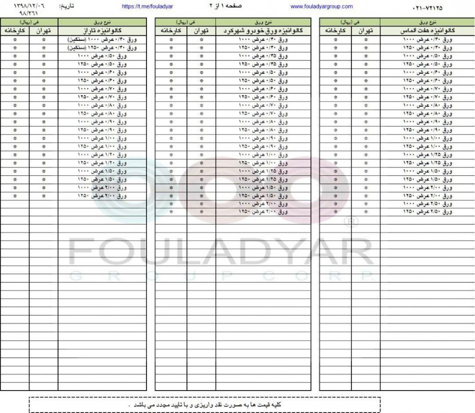 #گروه_شركتهاي_فولاديار بزرگترین عرضه کننده ورقهای سرد گالوانیزه و رنگی 02172125 http://www.fouladyargroup.com/ https://t.me/fouladyar