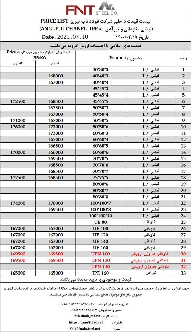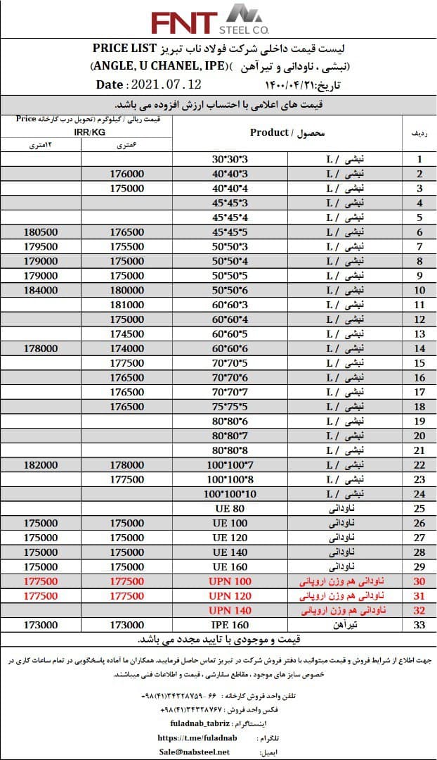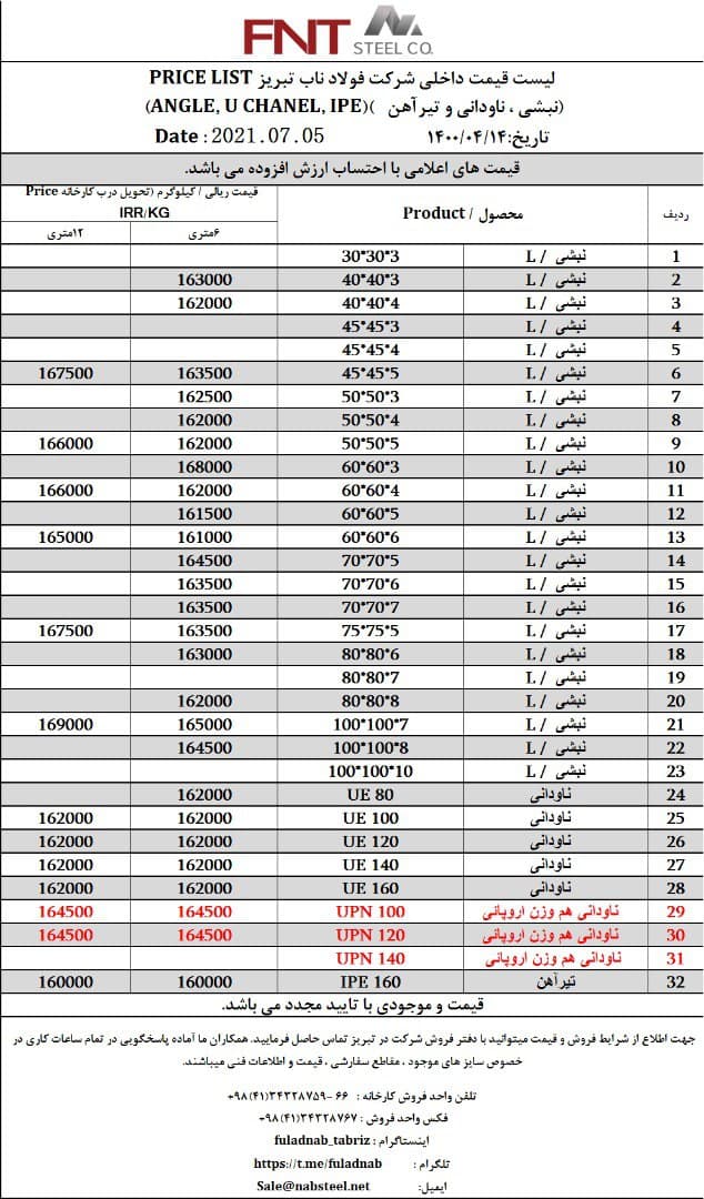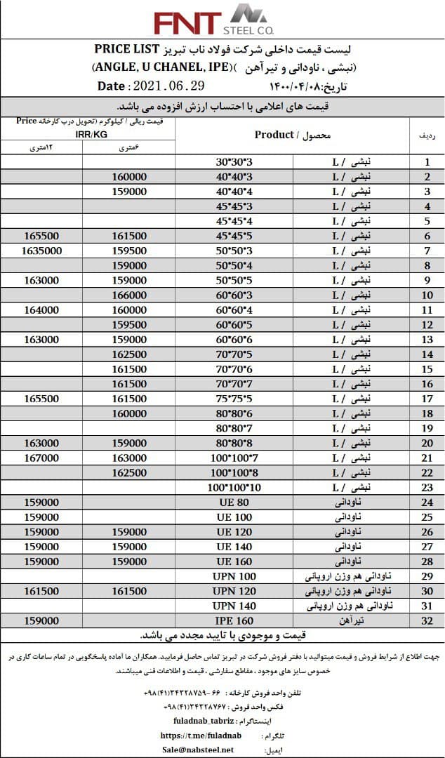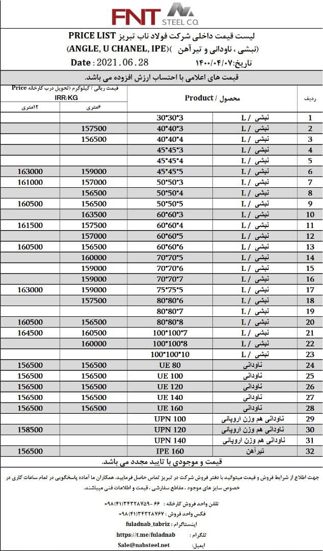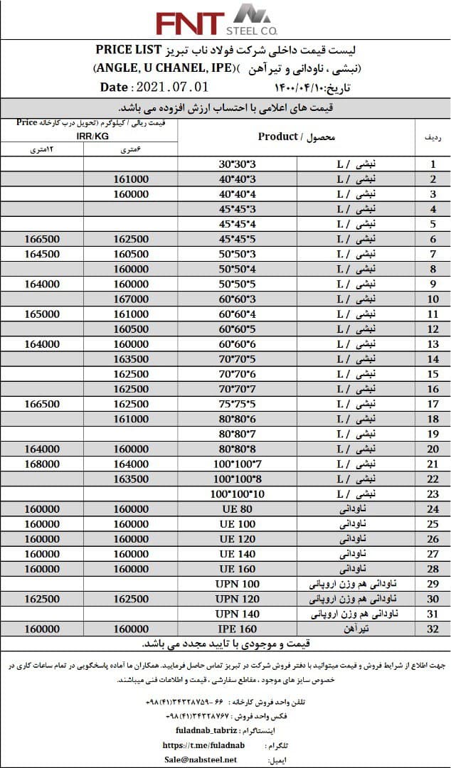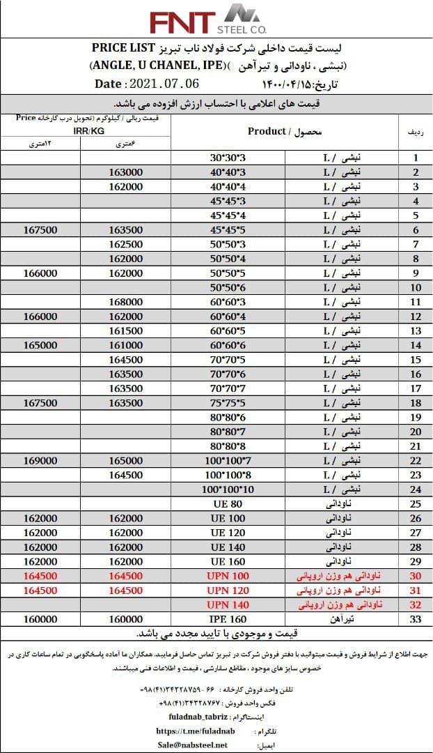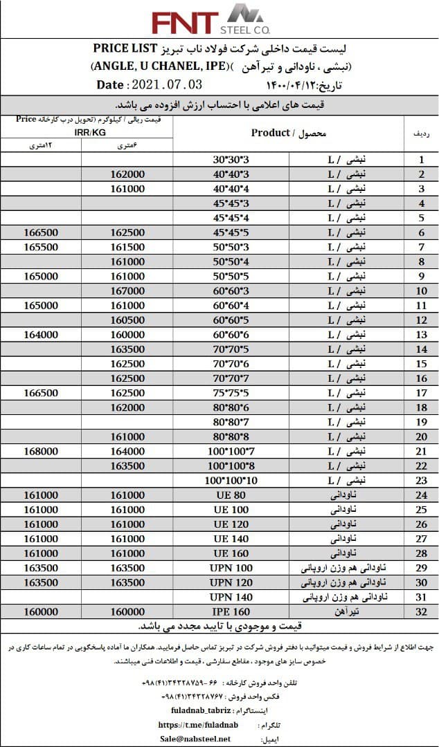 شرکت #فولاد_ناب_تبریز تولیدکننده انواع نبشی ناودانی و تیرآهن #فولاد_ناب_کیفیت_ناب ☎️۰۴۱۳۴۳۲۸۷۵۹-۶۶ 📱۰۹۰۱۸۰۱۳۸۷۶ 🌐www.nabsteel.com 🆔 @fuladnab https://foolad۲۴ ...