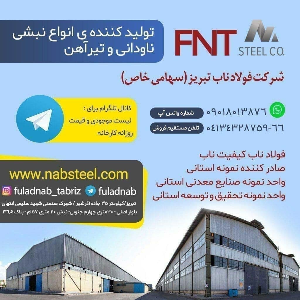 شرکت #فولاد_ناب_تبریز تولیدکننده انواع نبشی ناودانی و تیرآهن #فولاد_ناب_کیفیت_ناب ☎️04134328759-66 📱09018013876 🌐www.nabsteel.com 🆔 @fuladnab https://foolad24 ...