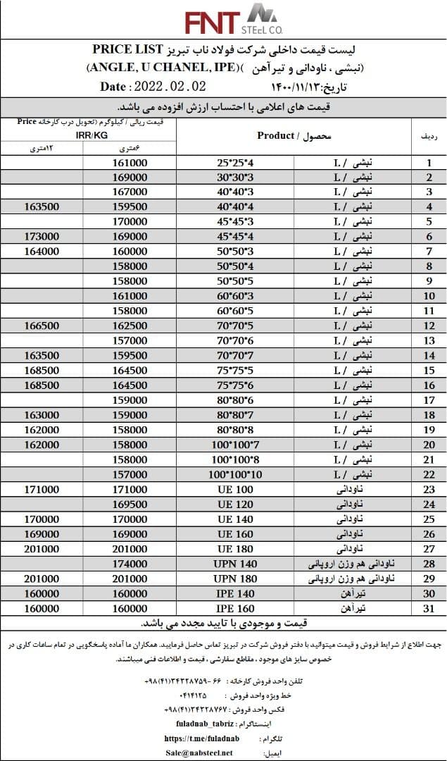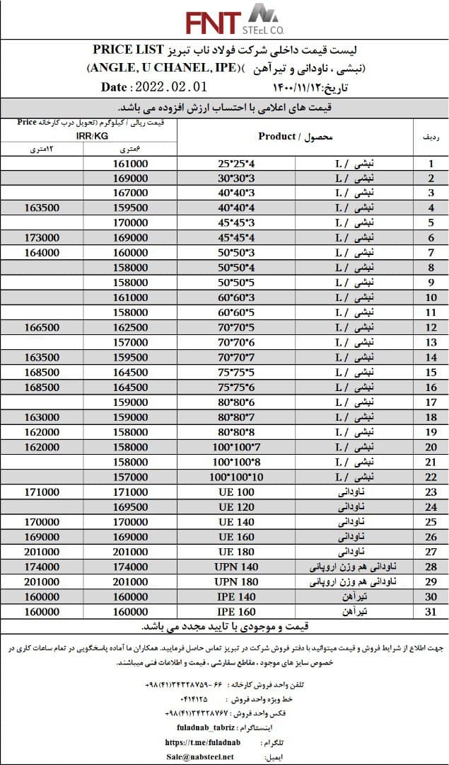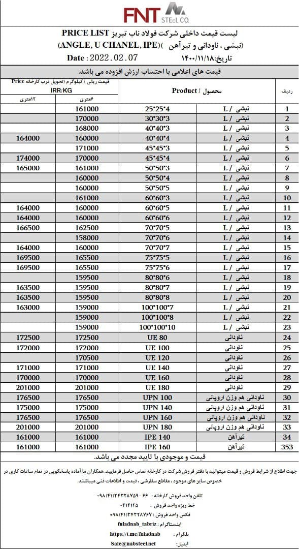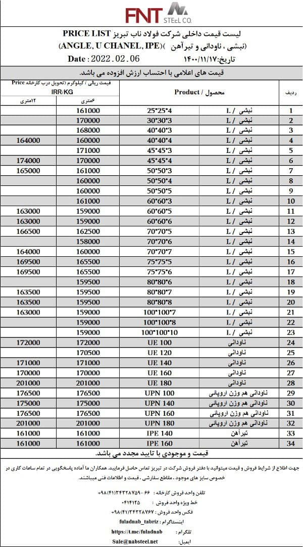 💢شرکت #فولاد_ناب_تبریز ✅تولیدکننده انواع نبشی ناودانی و تیرآهن #فولاد_ناب_کیفیت_ناب ☎️04134328759-66 📱09018013876 🌐www.nabsteel.com 🆔 @fuladnab
