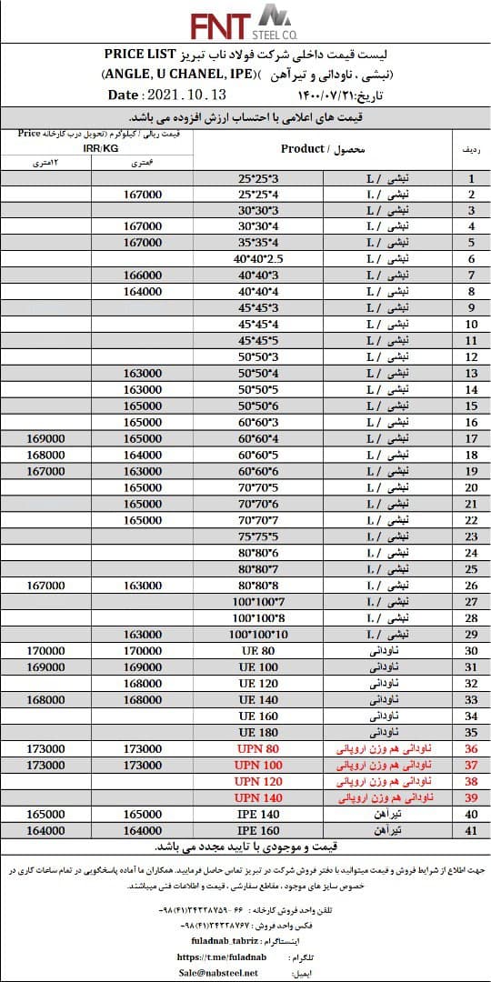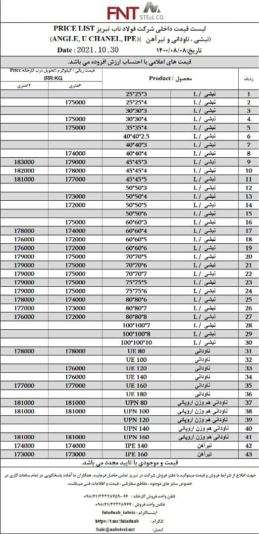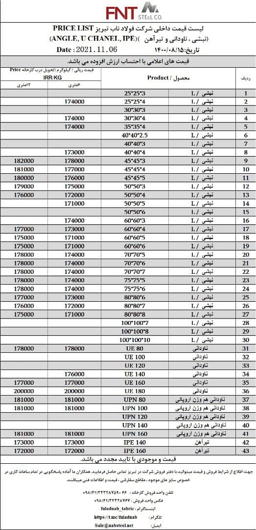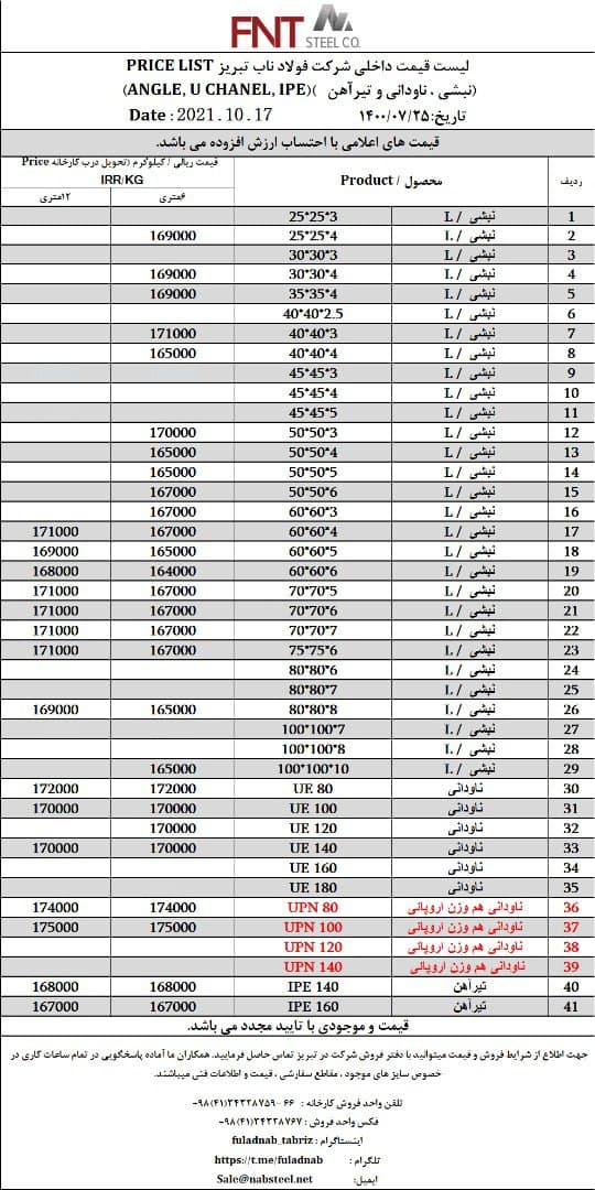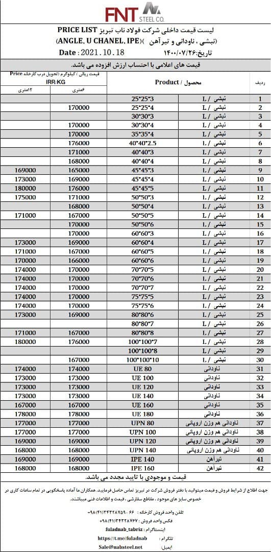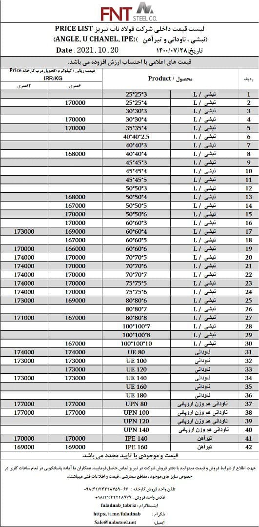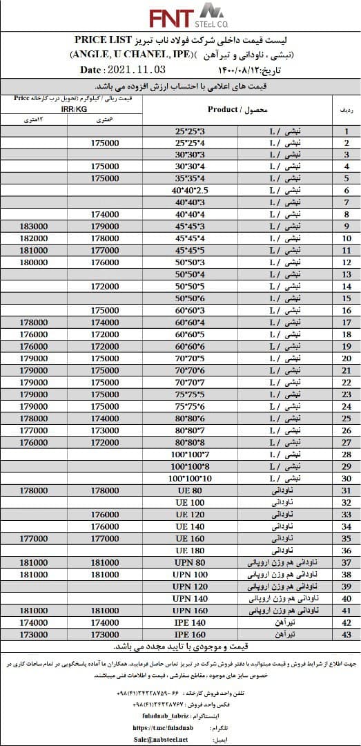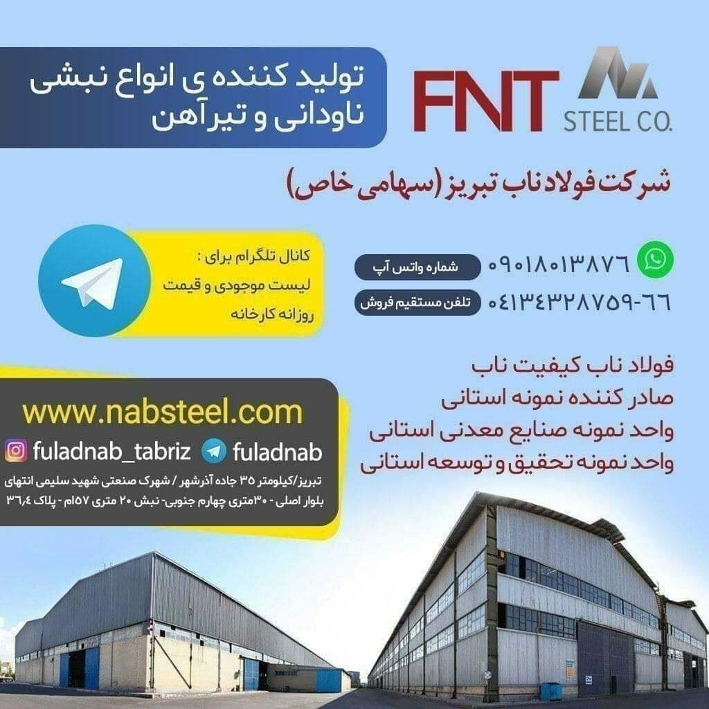 شرکت #فولاد_ناب_تبریز تولیدکننده انواع نبشی ناودانی و تیرآهن #فولاد_ناب_کیفیت_ناب ☎️04134328759-66 📱09018013876 🌐www.nabsteel.com 🆔 @fuladnab https://foolad24 ...
