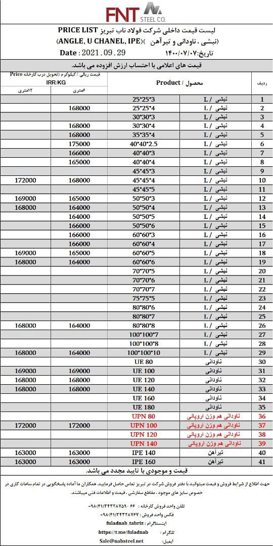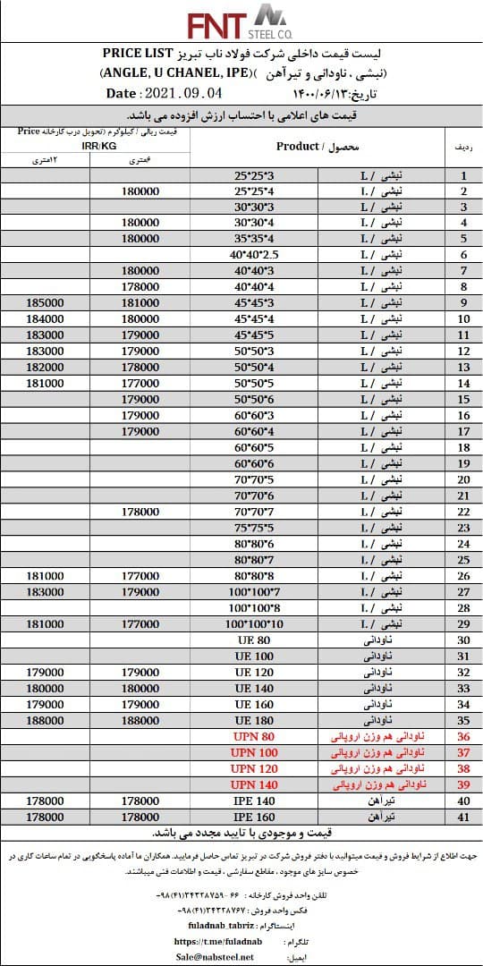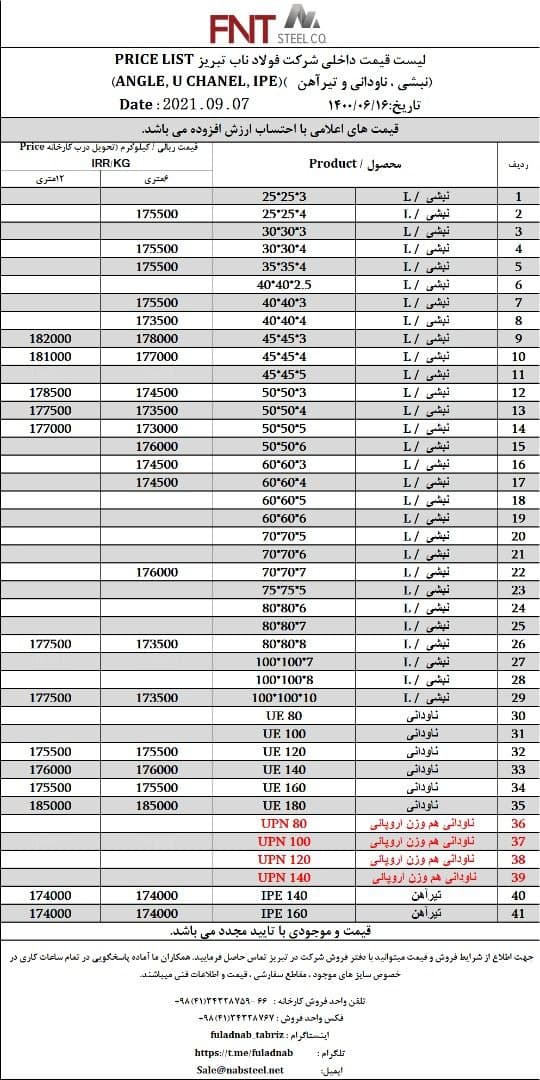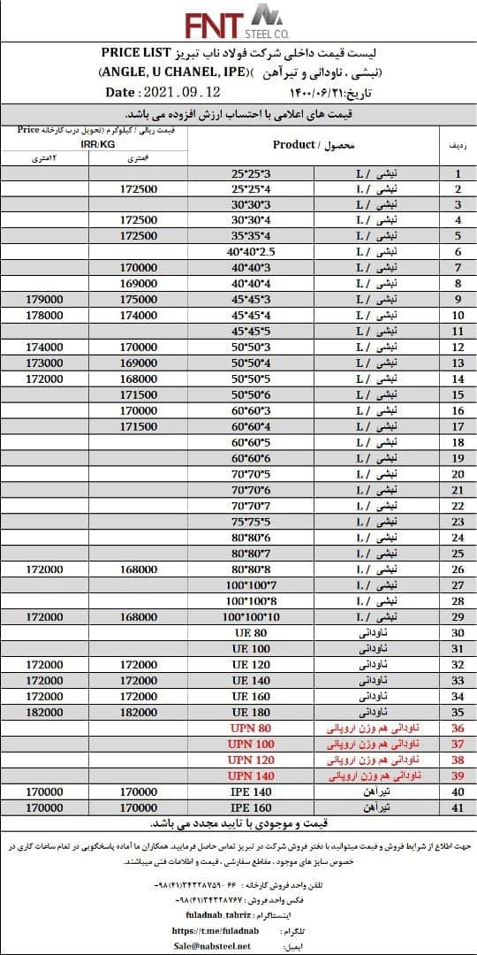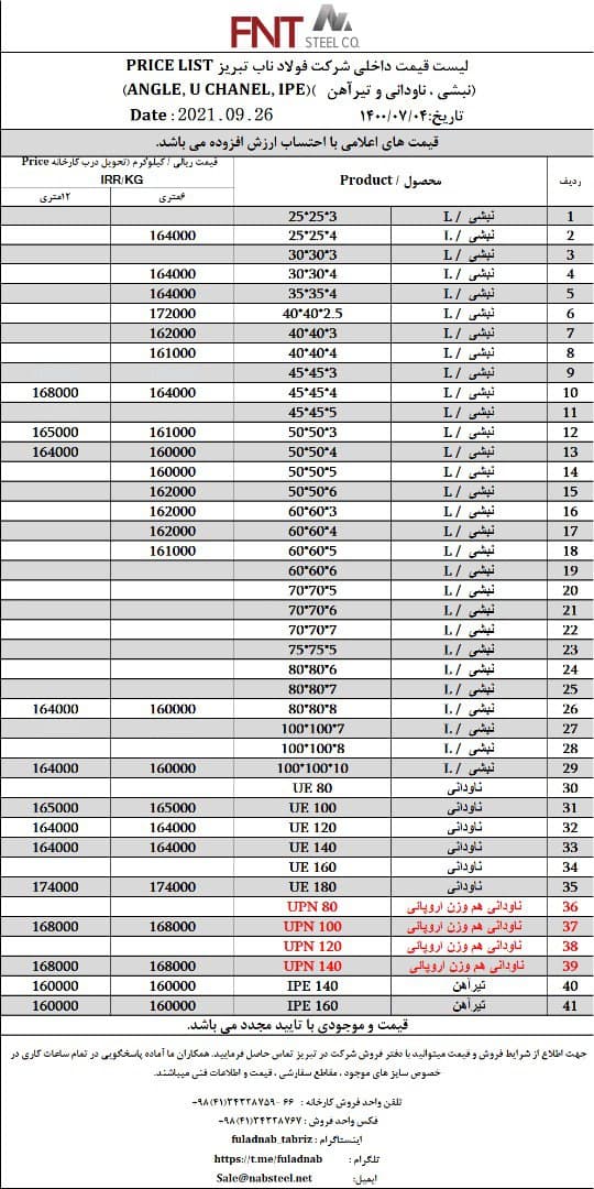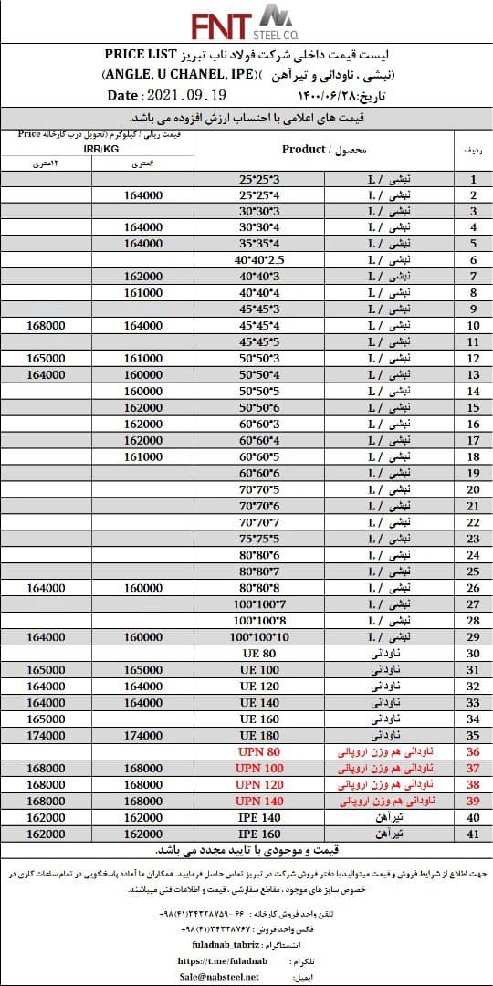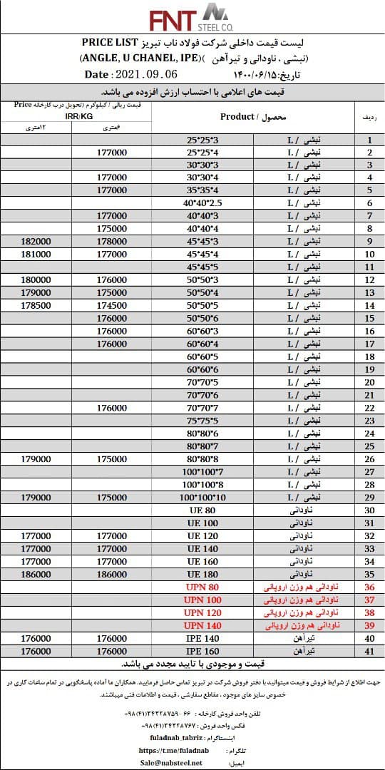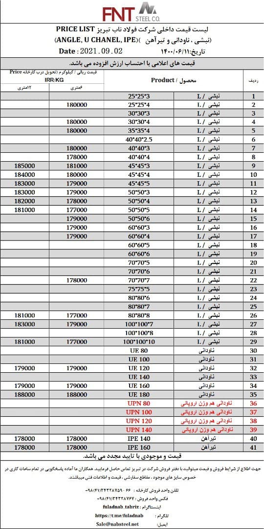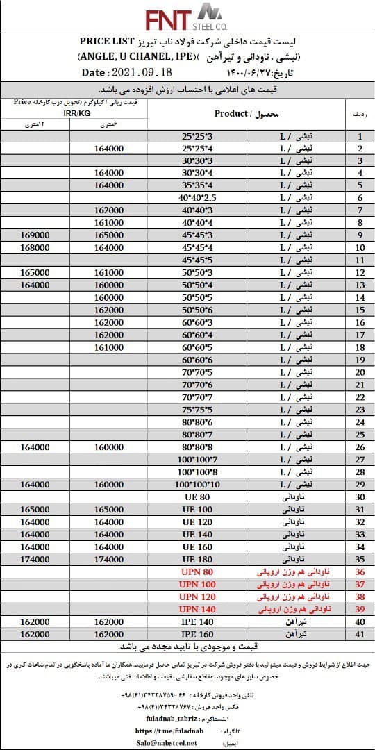شرکت #فولاد_ناب_تبریز تولیدکننده انواع نبشی ناودانی و تیرآهن #فولاد_ناب_کیفیت_ناب ☎️۰۴۱۳۴۳۲۸۷۵۹-۶۶ 📱۰۹۰۱۸۰۱۳۸۷۶ 🌐www.nabsteel.com 🆔 @fuladnab https://foolad24 ...