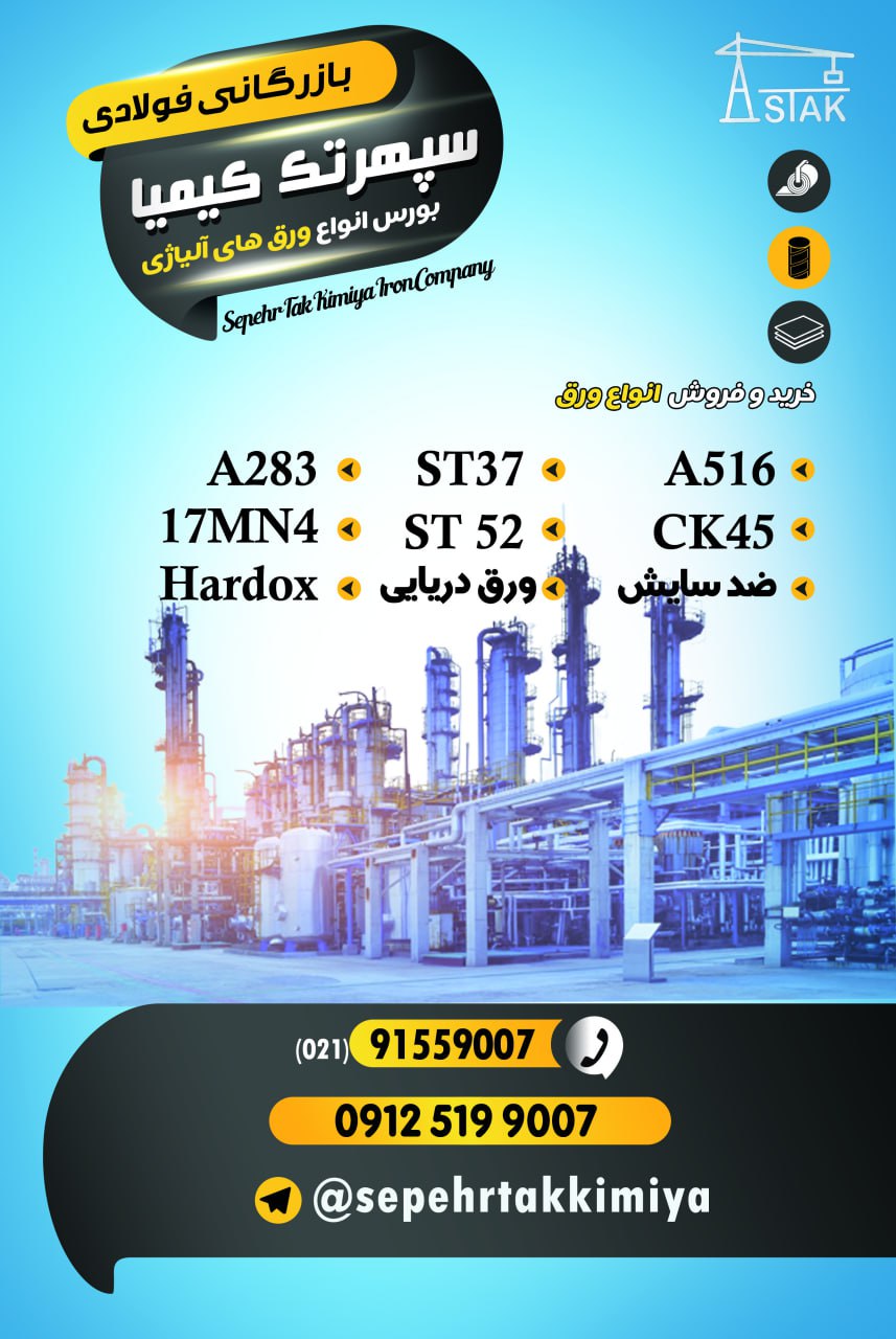 #سپهر_تک_کیمیا بــــــــــــورس ورق آلیـــــــــــــــــــاژی ((داخلی و خارجی)) ✅ورق A516 gr 70✅ ورق 10 تا 40 میل. ...
