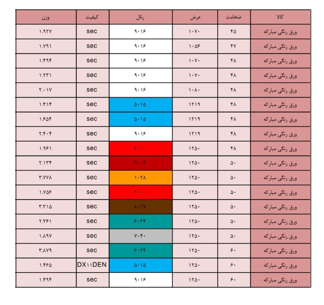 #فولاد_کسری_اسپادانا ورق رنگی فولادمبارکه 🔴🟠⚪️🔵 50 * 1250 ورق روغنی غرب 60 و80 * 1000 st12 انبار اصفهان ...