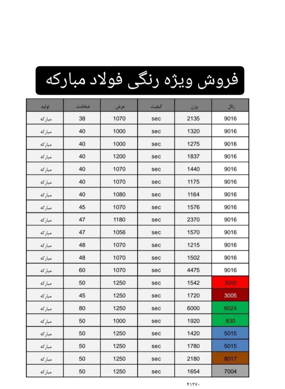 #فولاد_کسری_اسپادانا ورق رنگی فولادمبارکه 🔵 50 * 1250 *2000 انبار اصفهان/ذوزنقه ورق سیاه 💥 3.7 * 1250 st37 4 ...