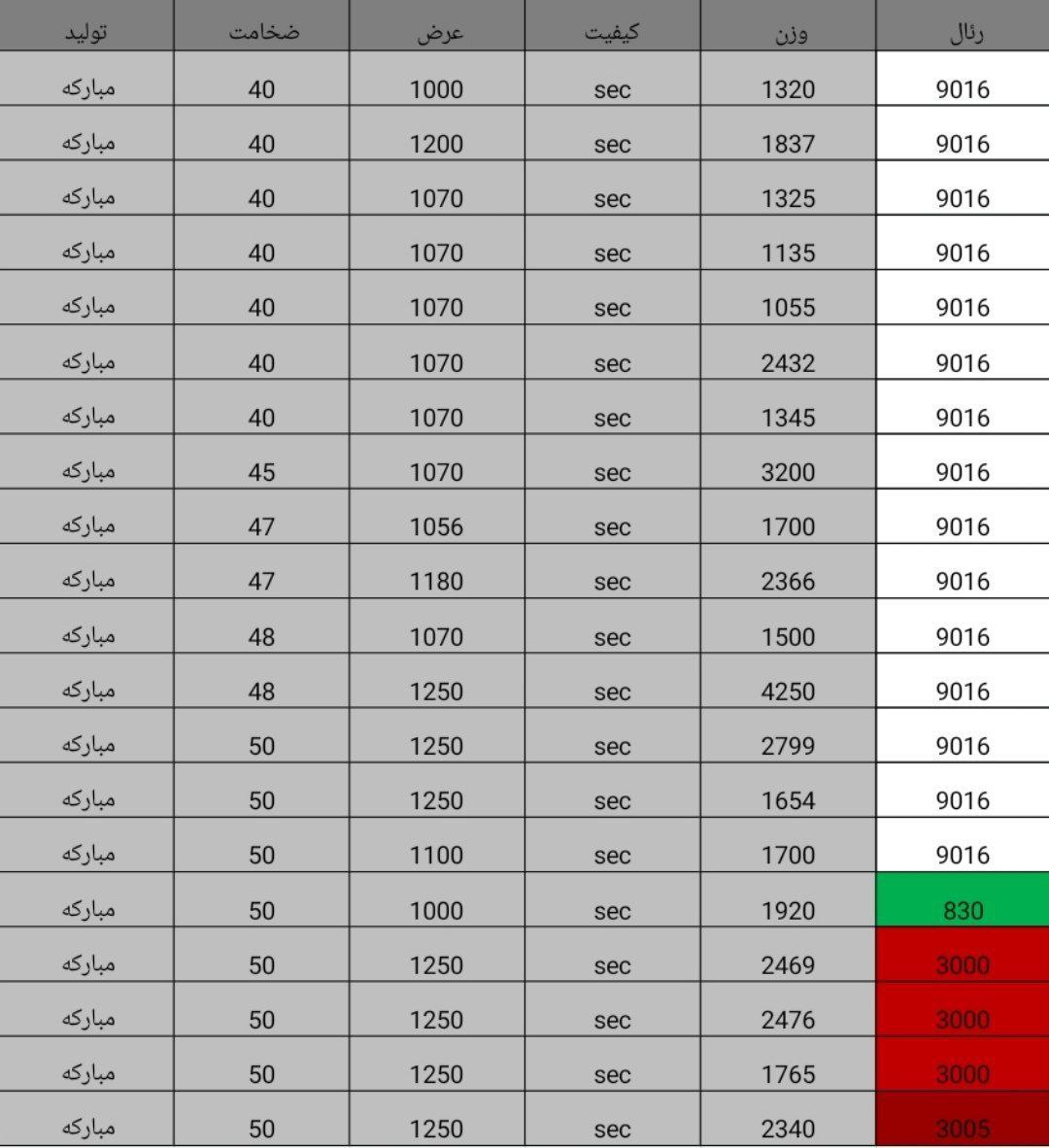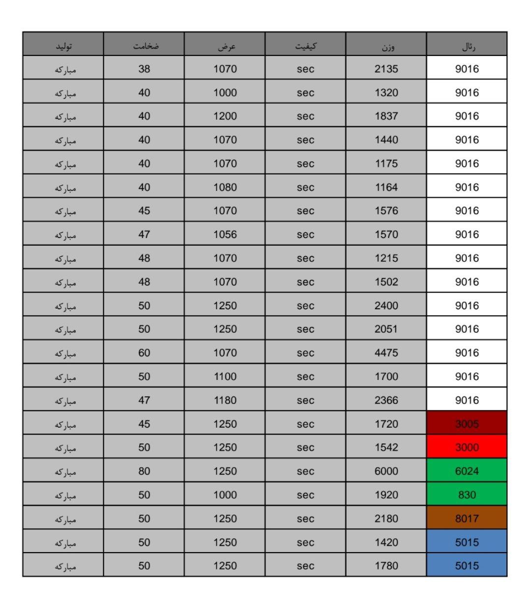 ورق رنگی درجه ۲ 🔵50*1250 1780 🔵50*1250 1420 🔴45*1250 1720 🔴50*1250 ...