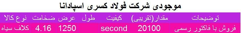 4*1250 درجه ۲ سبا بافاکتور رسمی 4*1250 درجه ۲ فولاد بافاکتور رسمی 4.8*1500 st37 فولاد 4*1550 dd11 فولاد شماره های تماس فولادکسری اسپادانا 03136940000 ...