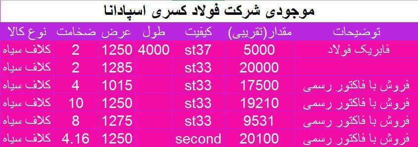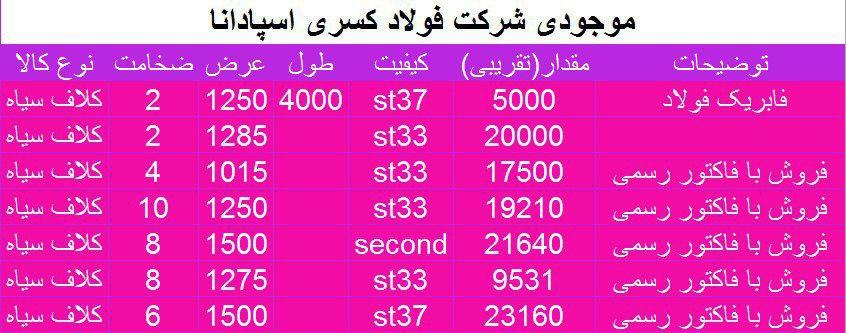 ۴۸*۱۰۰۰ وزن ۱۵۰۰۰ ۶۰*۱۲۳۰ وزن ۳۵۰۰ گالوانیزه فولاد درجه ۲ با فاکتور رسمی شماره های تماس فولادکسری اسپادانا 03136940000