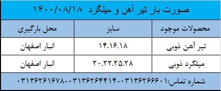 صورت بار تیر آهن ذوبی 14 16 18 22 27 بارگیری از انبار اصفهان 09132222269 03136266601