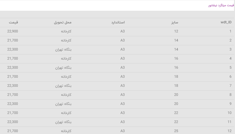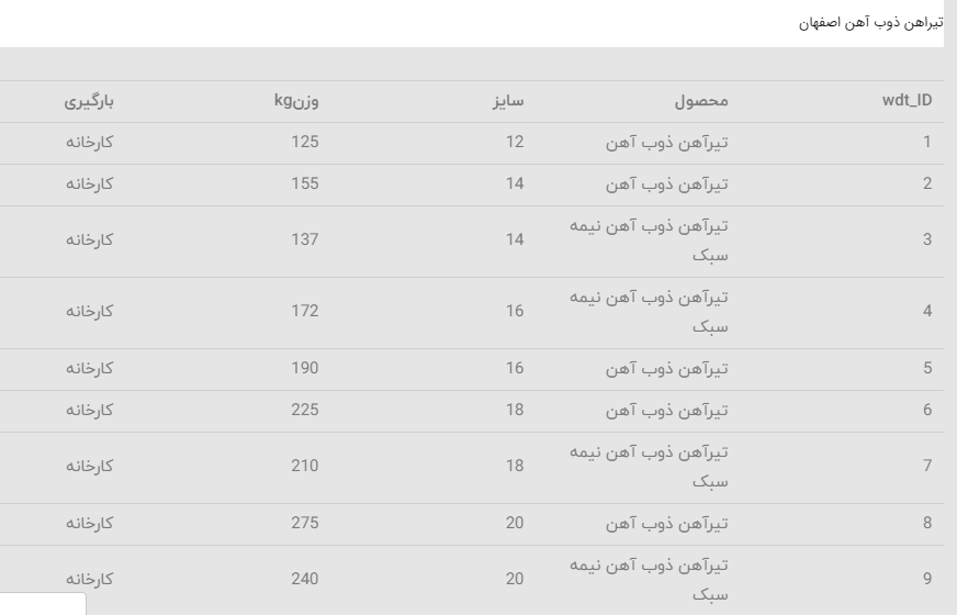 1402/08/28 موجودی لوله مانیسمان مشخصات رده طول m وزن هر شاخه ۴ اینچ ۴۰ ۶ متر 94-93 kg ۴ اینچ ۴۰ نرمال ...