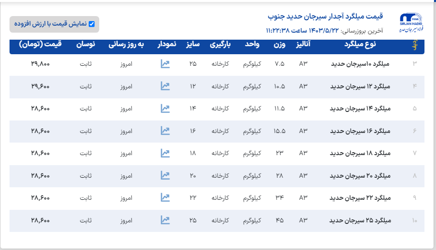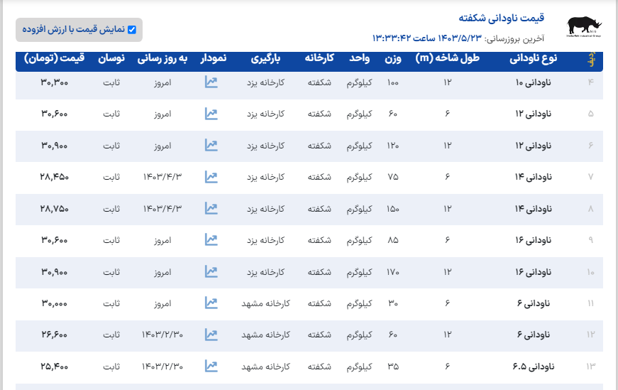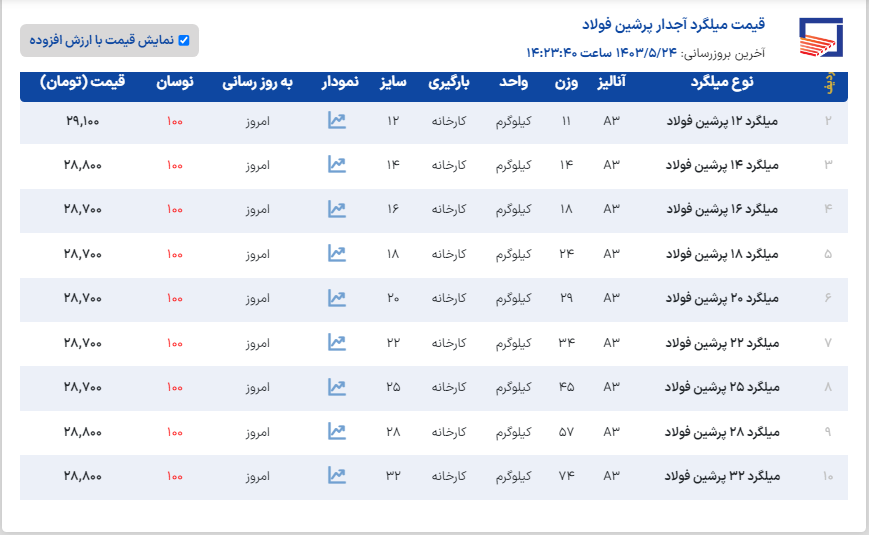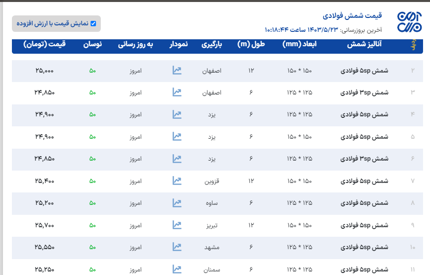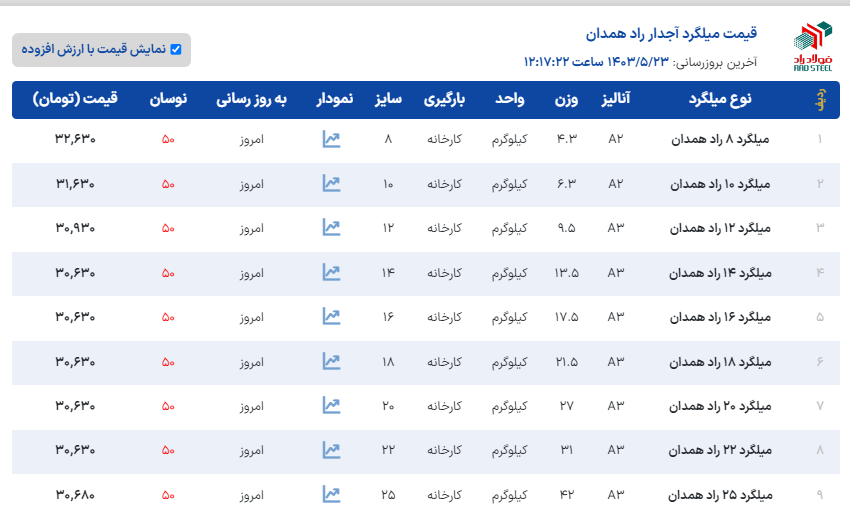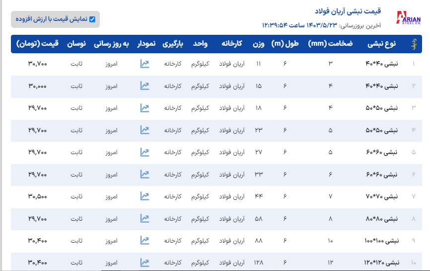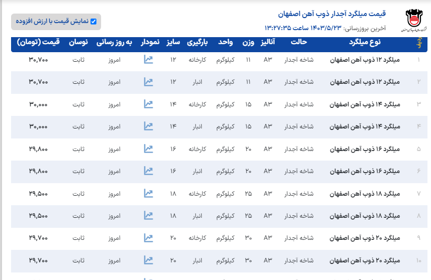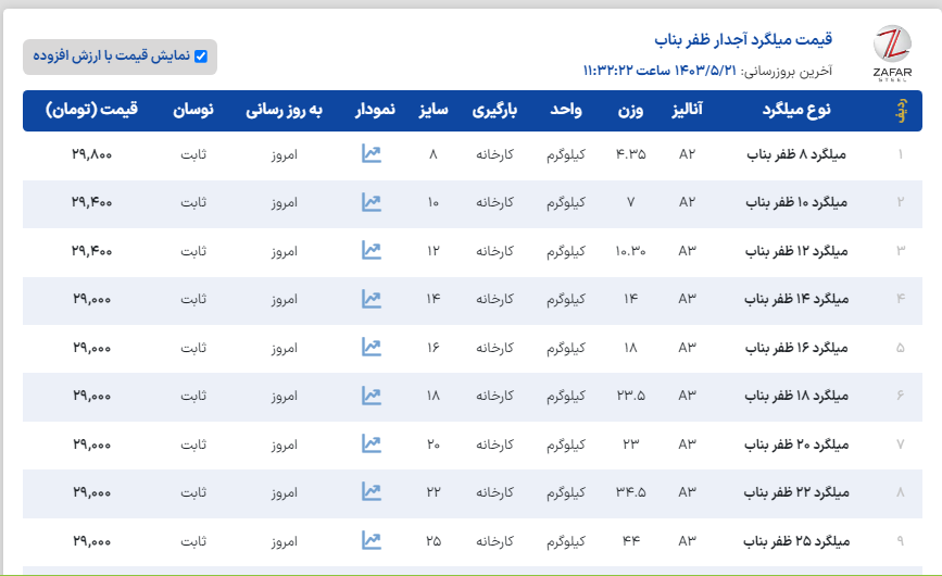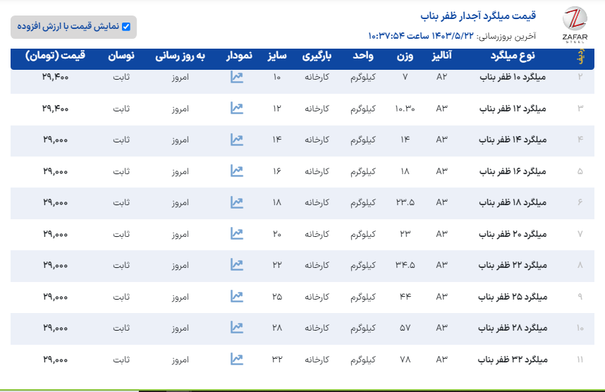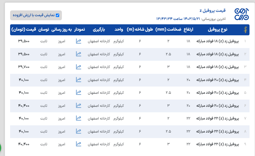 اعلام موجودی پروفیل z (زد) آهن ملل