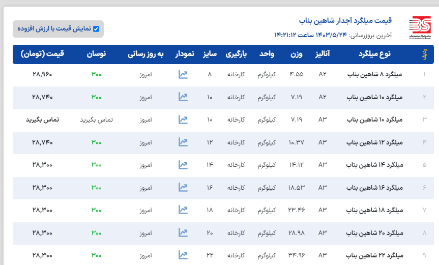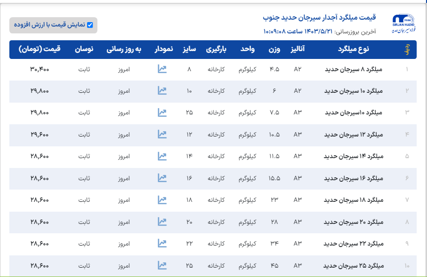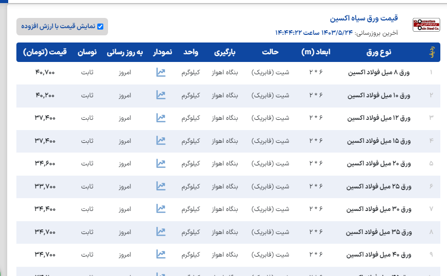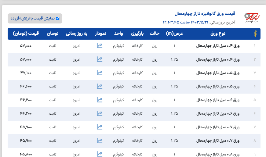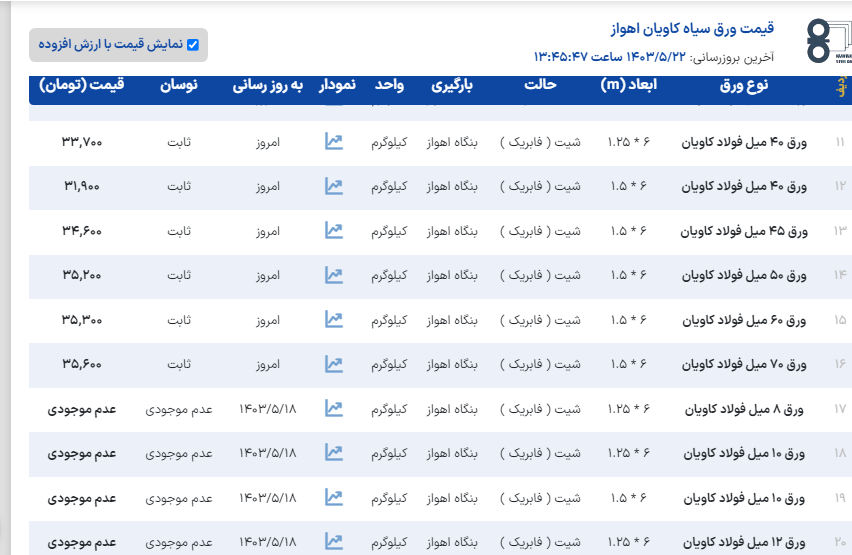 اعلام موجودی ورق گالوانیزه آهن ملل