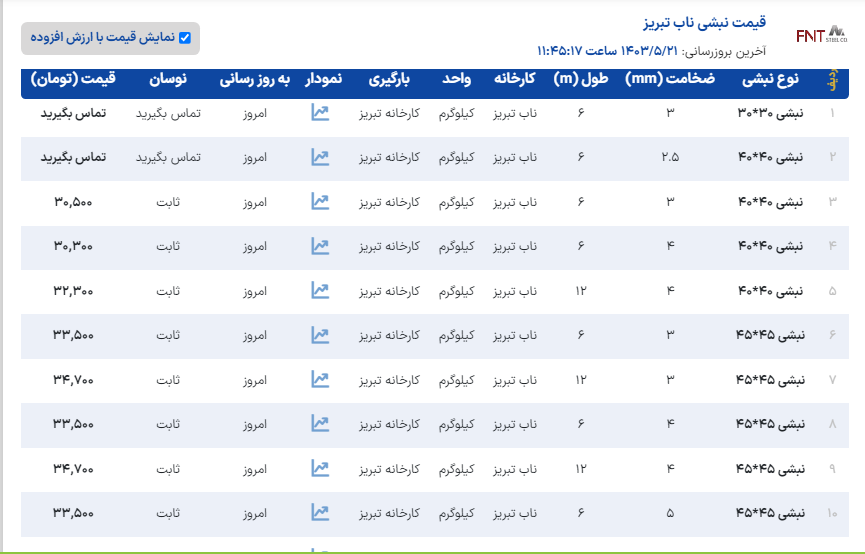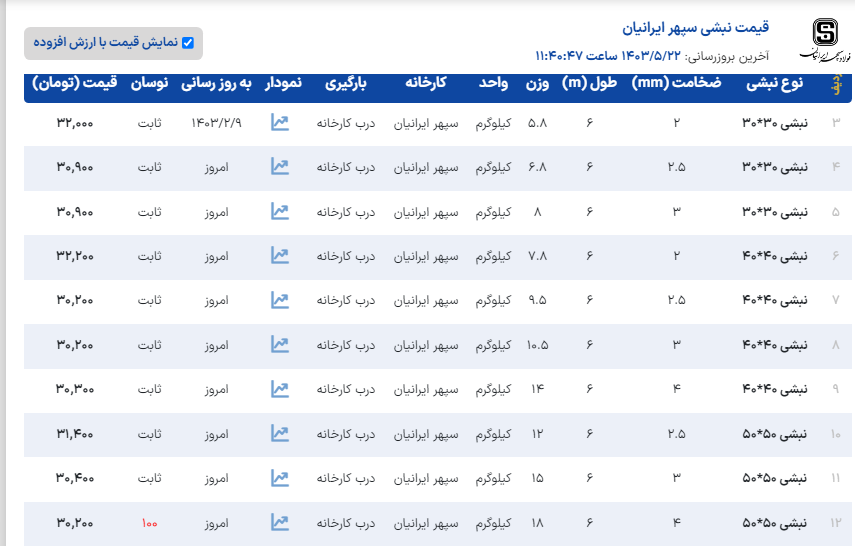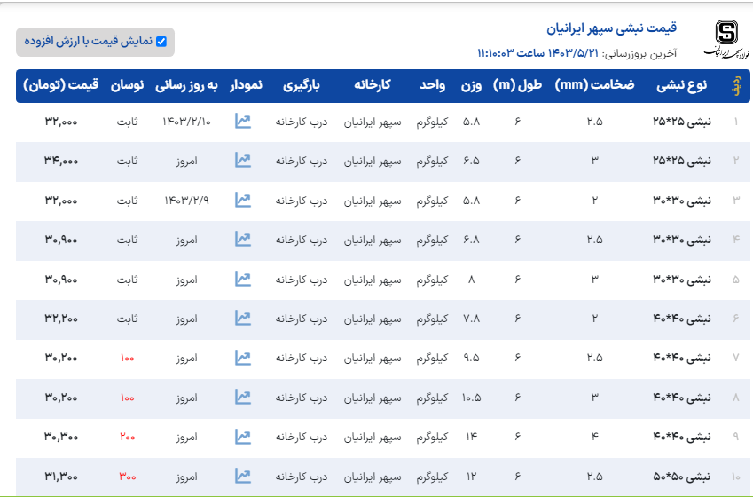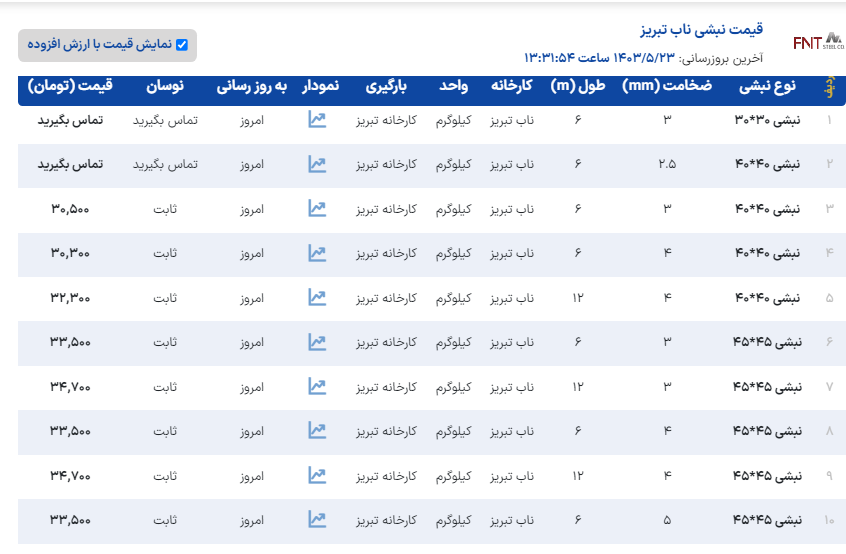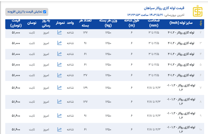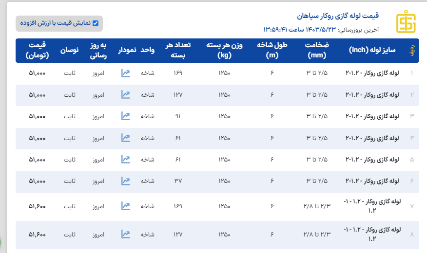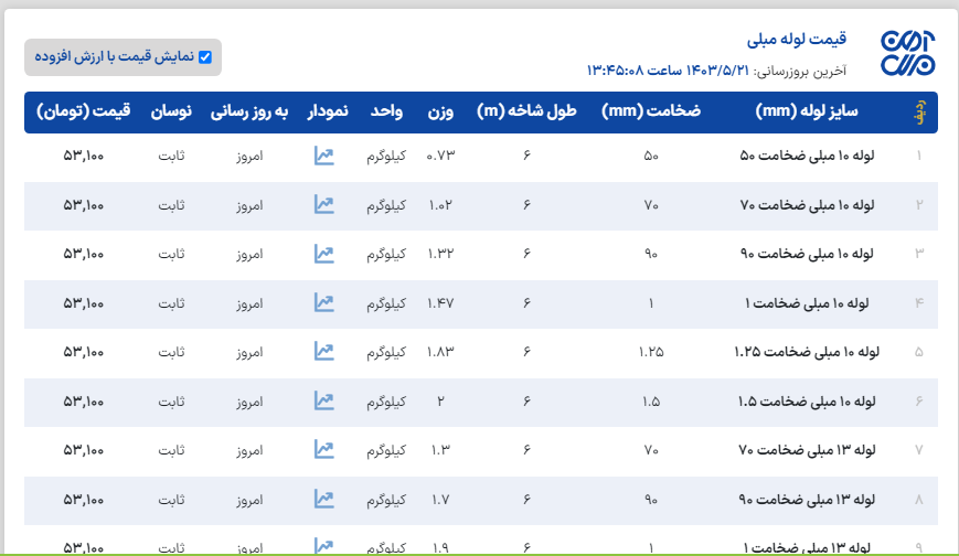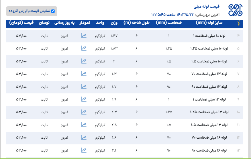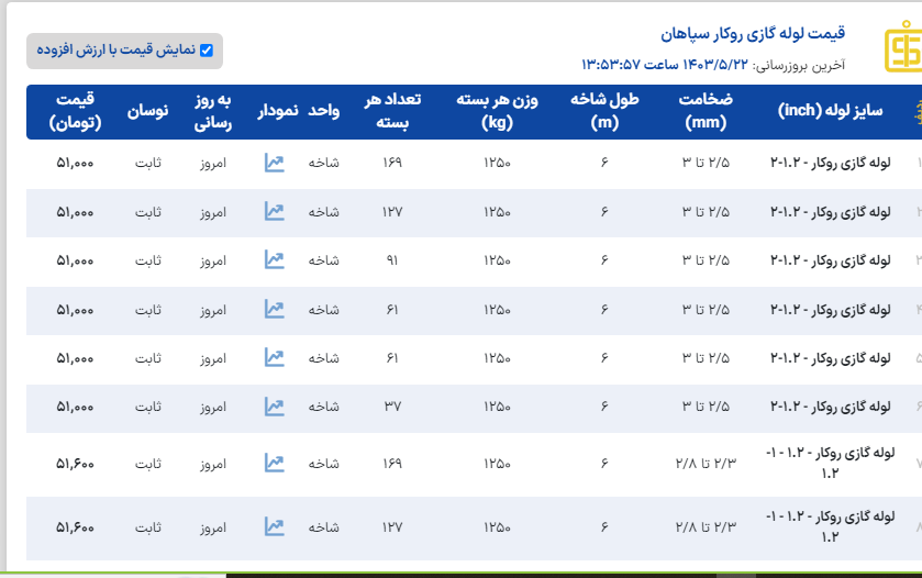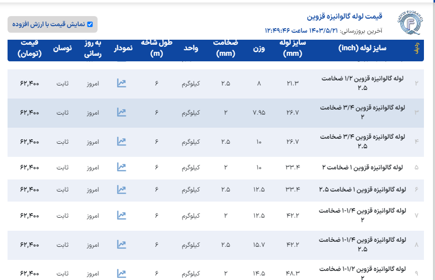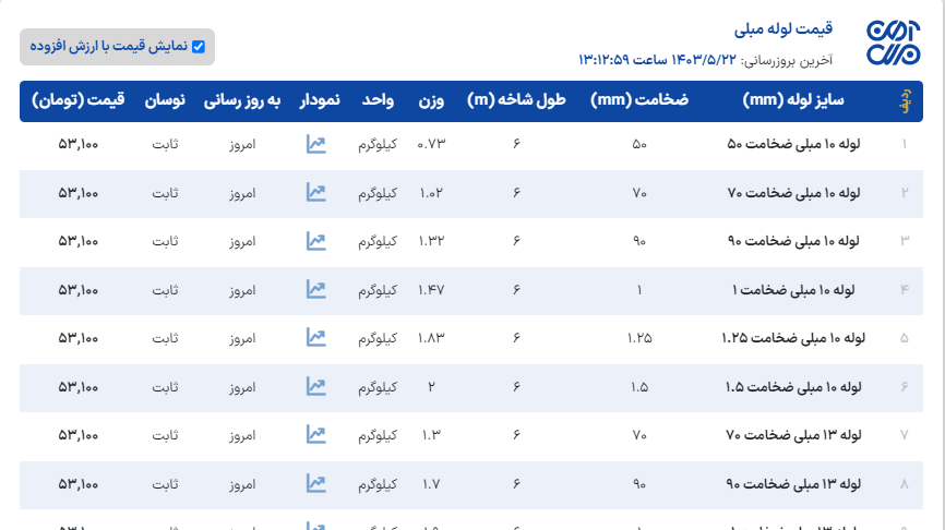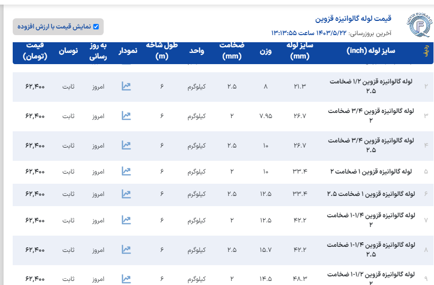 اعلام موجودی لوله گالوانیزه آهن ملل