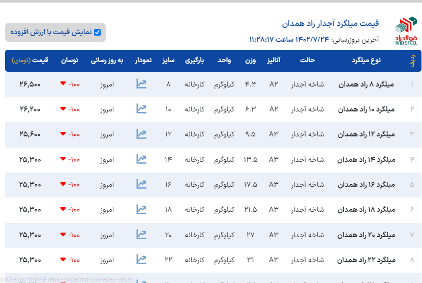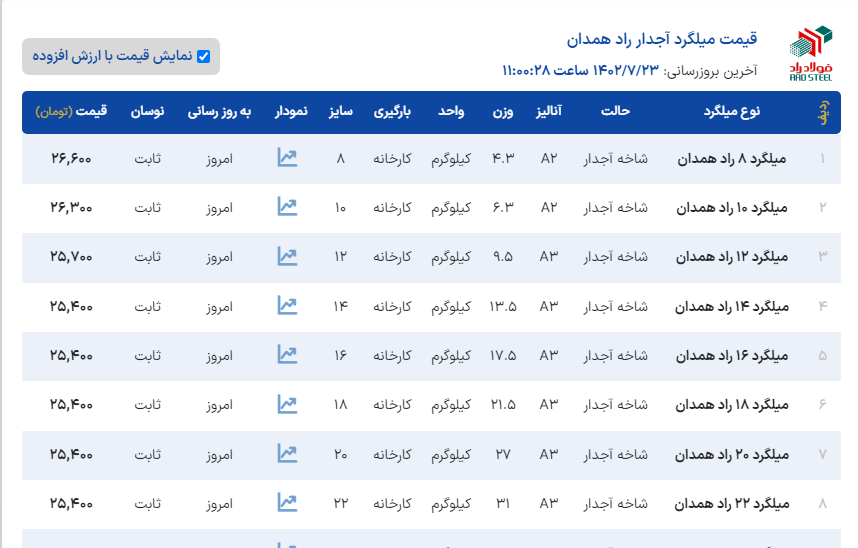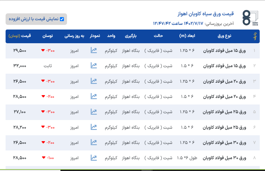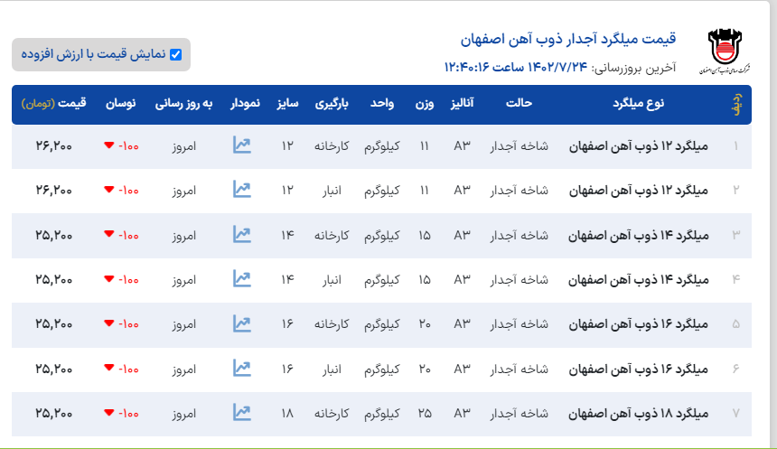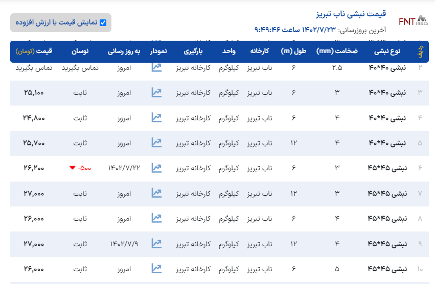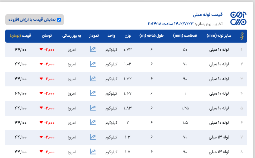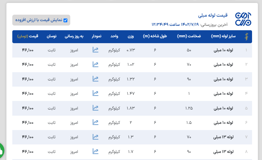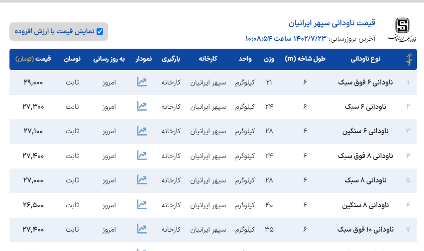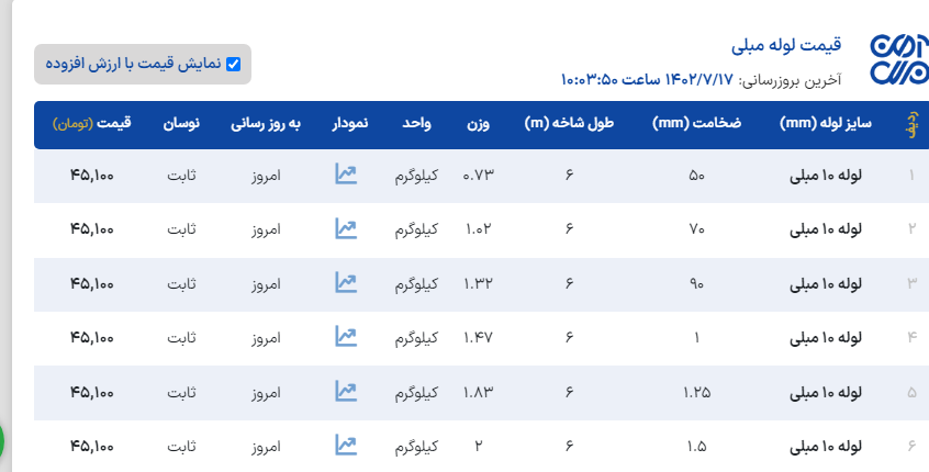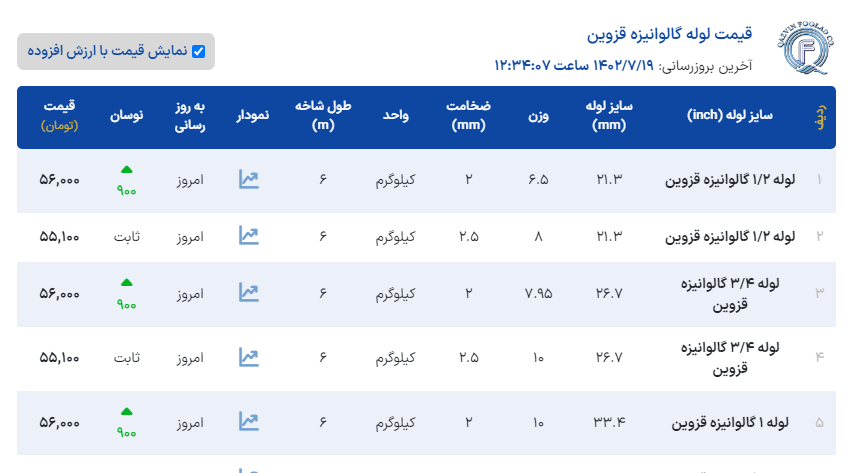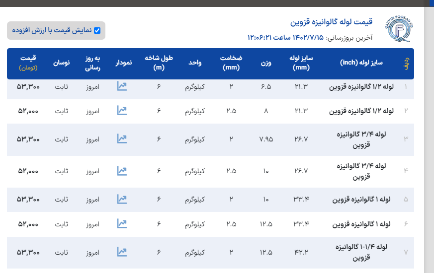 اعلام موجودی لوله گالوانیزه آهن ملل