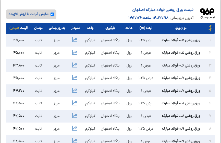 اعلام موجودی ورق روغنی (سرد) اهن ملل