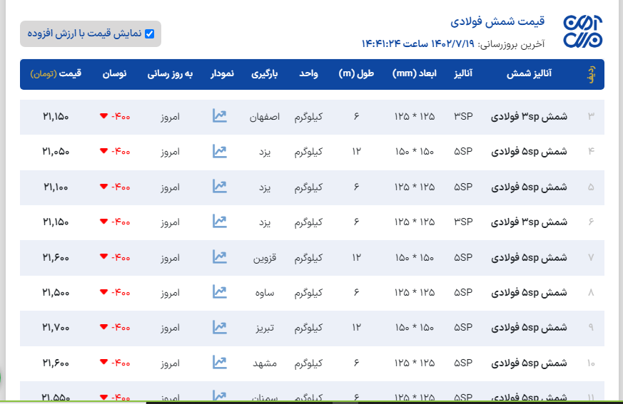 اعلام موجودی پروفیل z(پرلین) آهن ملل