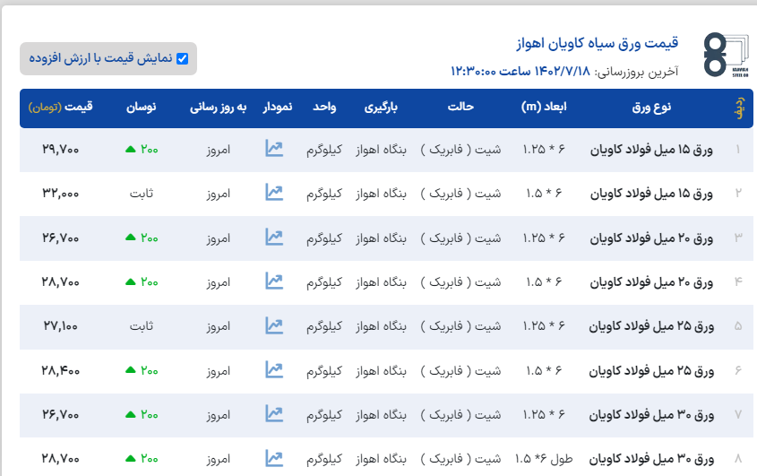 اعلام موجودی ورق روغنی (سرد) آهن ملل