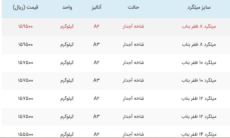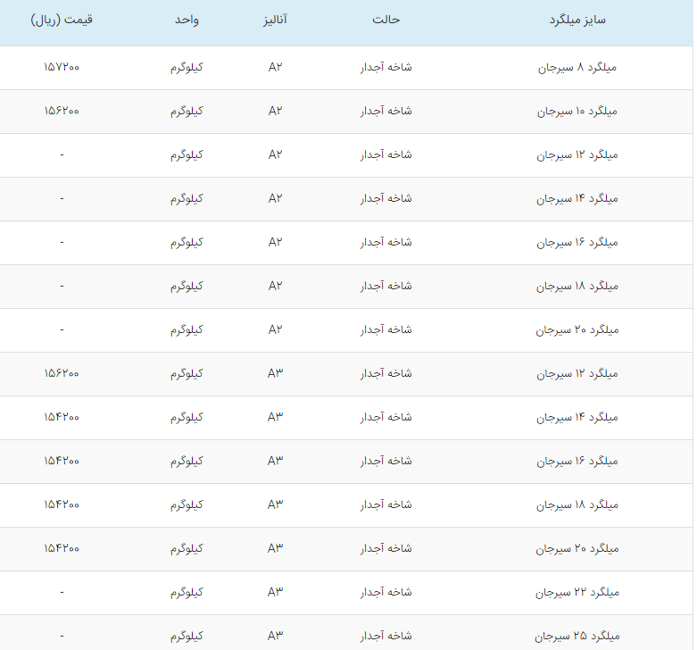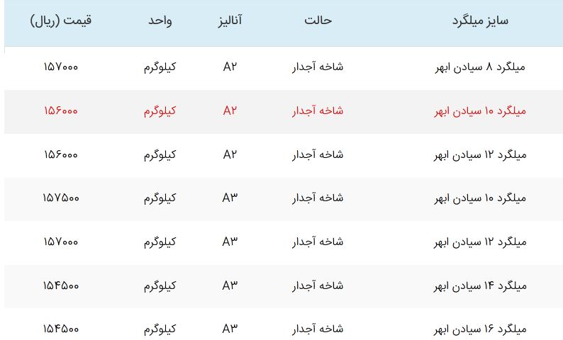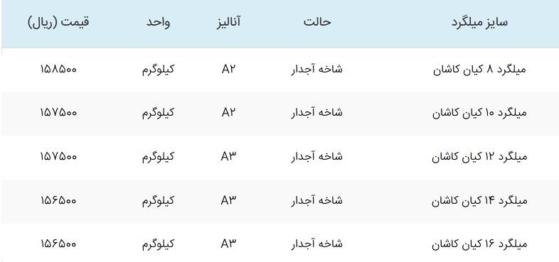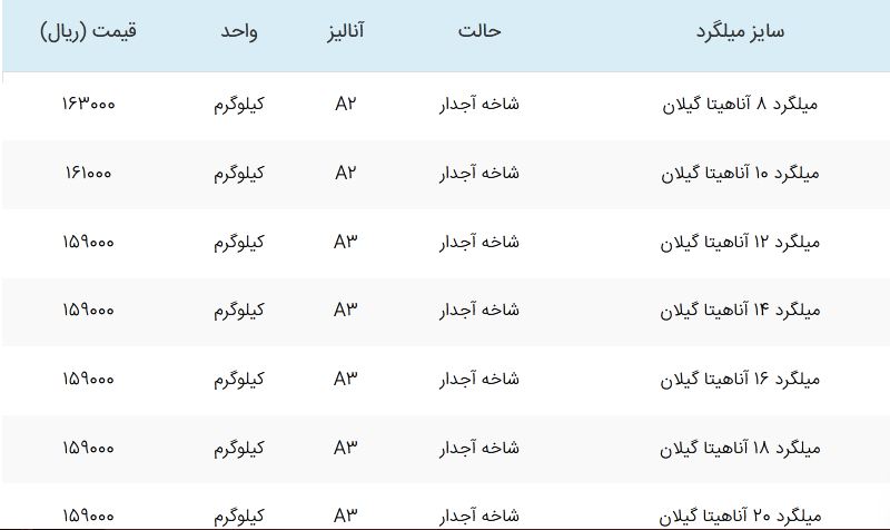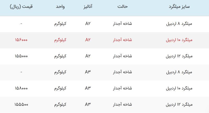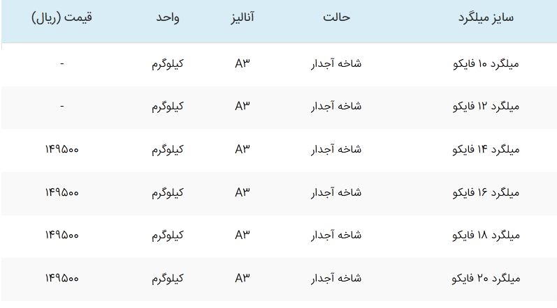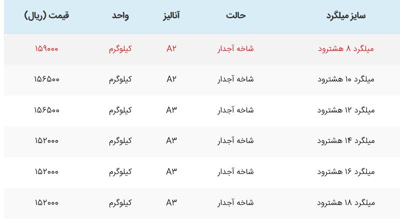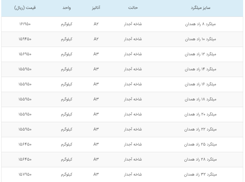 📆 شنبه 5 تیر ماه 1400 👈 #میلگرد_هشترود : 🔻 50 تومان کاهش در برخی سایزها