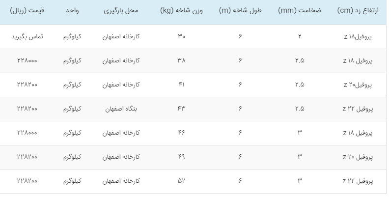 📆 یکشنبه 30 خرداد ماه 1400 👈 #پروفیل_زد (z) در بازار اصفهان : 🔻 200 تومان کاهش ⬅️ ارتباط با کارشناسان فروش جهت خرید کالا: ثبت سفارش: @ahanmelal_box_pipe ☎ ...