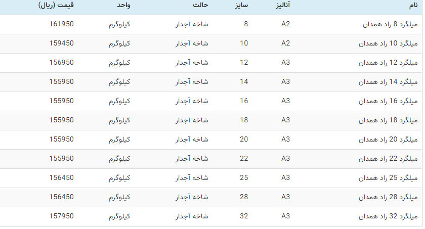 سه شنبه 1 تیر ماه 1400 📢 #قیمت_میلگرد_آجدار_کاوه_تیکمه_داش ⏺ بدون تغییر قیمت رد اکثر سایزها بارگیری از کارخانه میلگرد 8 A2 قیمت 👈 15640 میلگرد 10 ...
