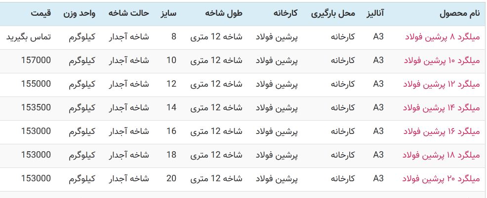 سه شنبه 8 تیر ماه 1400 📢 #قیمت_میلگرد_آجدار_پرشین_فولاد ⏺ بدون تغییر قیمت نسبت به روز قبل بارگیری از کارخانه میلگرد 10 A3 قیمت 👈 15700 میلگرد 1 ...