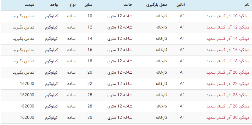 چهارشنبه 2 تیر ماه 1400 📢 #قیمت_میلگرد_ساده_آذر_گستر_سدید ⏺ بدون تغییر قیمت نسبت به روز قبل بارگیری از کارخانه میلگرد 22 A1 قیمت 👈 16000 میلگرد ...