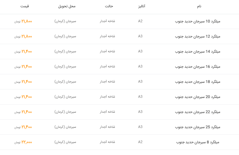 📣 #میلگرد_آجدار 🔗 سیرجان حدید جنوب 👈 ثابت اسپادان آهن >>> مشاور فولادی من ☎️ 031 - 31 31 90 90 مشاهده محصولات اسپادان آهن آیریک