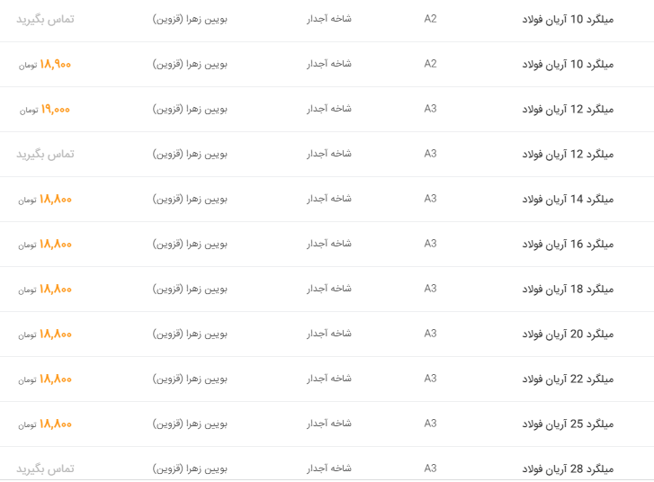 اسپادان آهن 📣 #میلگرد_آجدار 🔗 کیان فولاد ابهر 👈 100 افزایش در اکثر سایزها اسپادان آهن >>> مشاور فولادی من ☎️ 031 - 31 31 90 90 مشاهده محصولات اسپادان آهن آی ...