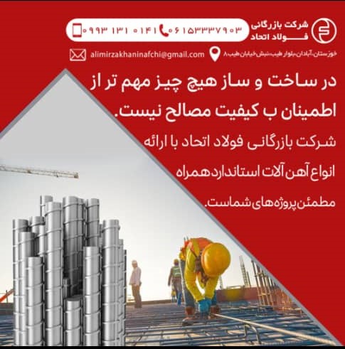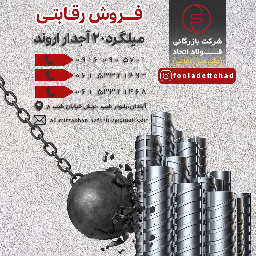 ⚜️شرکت بازرگانی فولاد اتحاد نوین اروند ✅عرضه کننده انواع آهن آلات 💠 میلگردآجدار 📌 16و 20 و 25 گروه ملی اهواز 📌 32 فولاد آتیه خاور میانه 📌10 و 12 و 16 رو ...