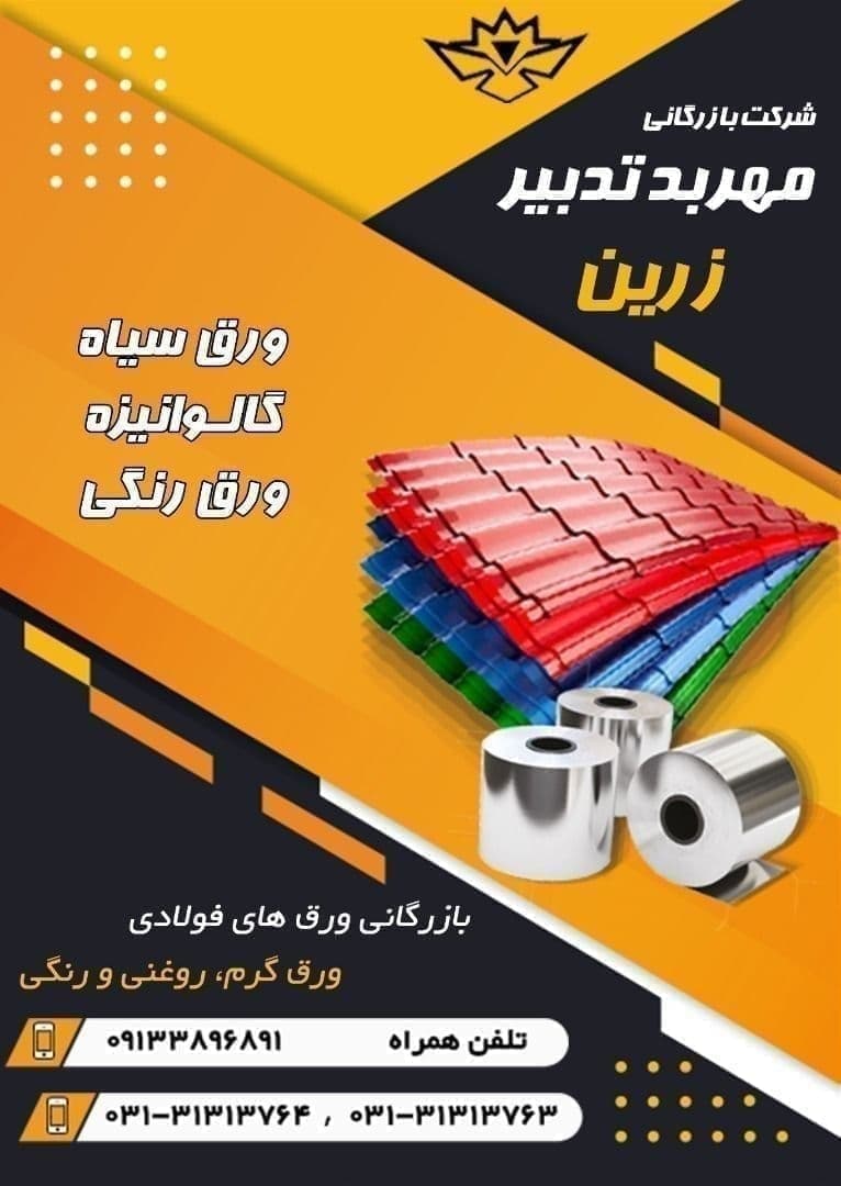 🔴شرکت بازرگانی #مهربد_تدبیر_زرین 🔴 بازرگانی انواع ورق های👇🏻👇🏻 🔹ورق سیاه 🔹ورق روغنی 🔹ورق رنگی 📱09133896891 ☎️031-31313764 ☎️031-31313763