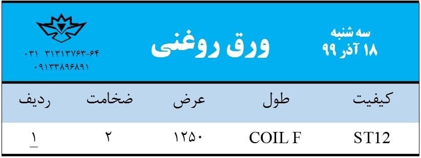موجودی ورق روغنی 1.5 1250 fq 2 1250 st12 foolad شماره تماس شرکت مهربد تدبیر زرین 03131313763 03131313764 09133896891 https://t.me/arvinstl