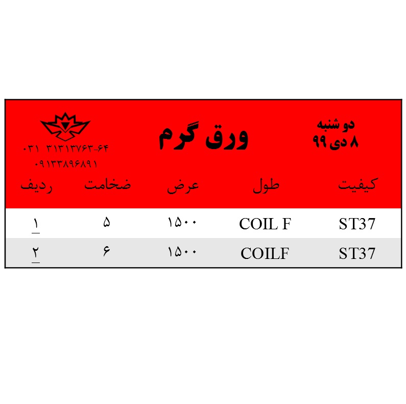 #شرکت_مهربد_تدبیر_زرین ✅بازرگانی انواع ورق فولادی. گرم. رنگی. روغنی 4 1250 st37 5 1500 st37 8 1500 st3 تماس: ☎️03131313763 ☎️03 ...